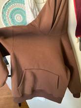Suéter con capucha muy bonito. Bien confeccionado, tela de alta calidad, suave al tacto, con la proporción perfecta de grosor, capucha de construcción de doble capa, agradable capa interior de forro polar, ideal para las temporadas de clima fresco a frío. Excelente costura, tiene un peso agradable. El color es exactamente como se muestra en las fotos publicitadas. Se siente realmente acogedor. El precio es muy justo (creo que la calidad del suéter vale más dinero). entrega rápida gracias. Compré 3 de ellos.