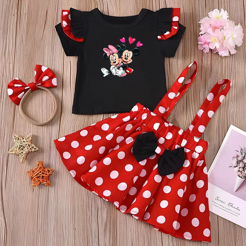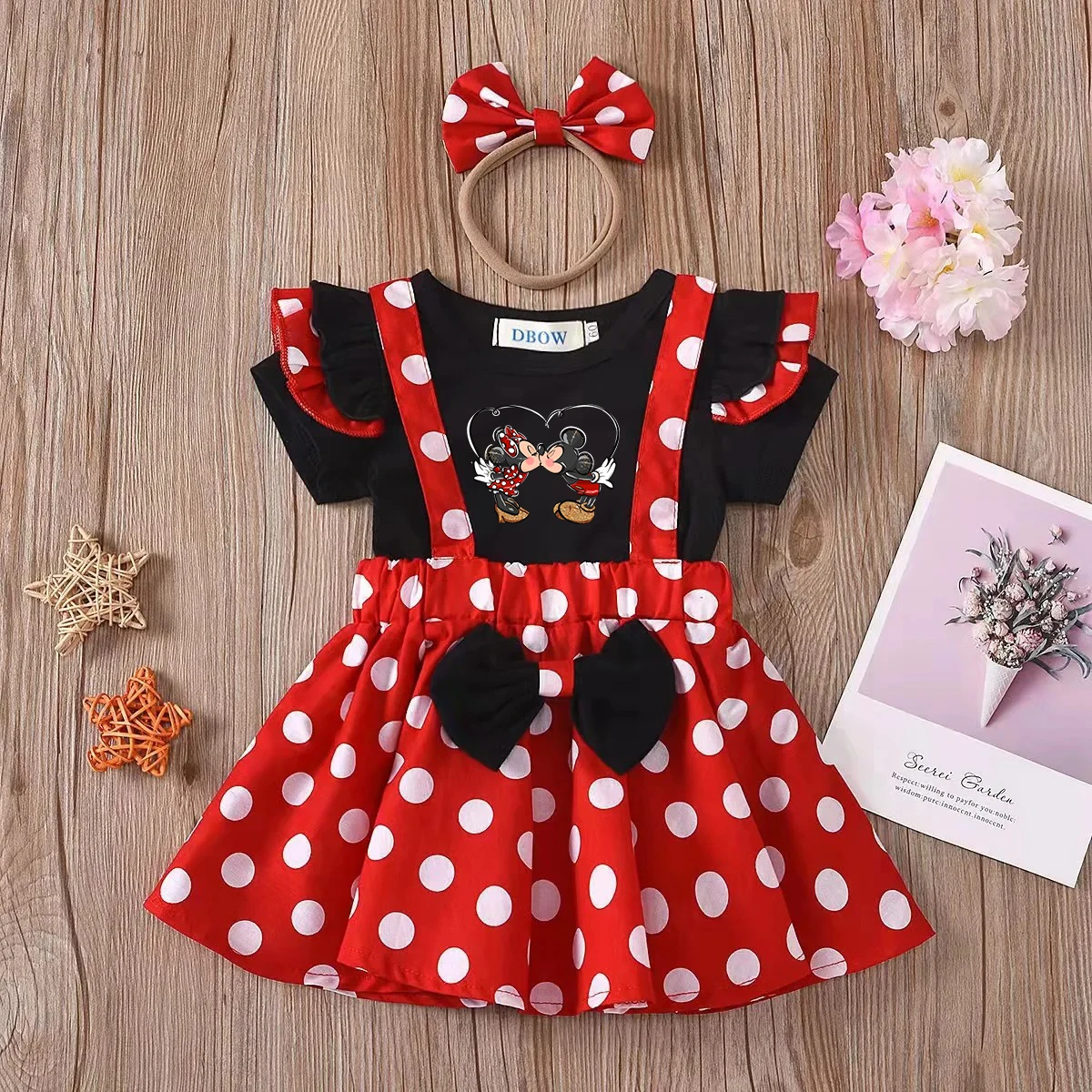 2 unids/set Mickey Minnie Mouse traje para niños niñas noche de verano niños puntos Tops falda vestido de Cosplay con diadema arco