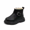 NOVEDAD DE VERANO 2023, botas cálidas para niños, botas de nieve para niñas, zapatos de algodón con correa en el tobillo, botas de terciopelo para bebés, botas negras y Beige I07077