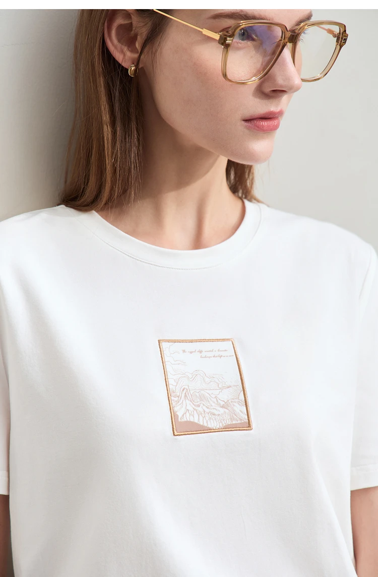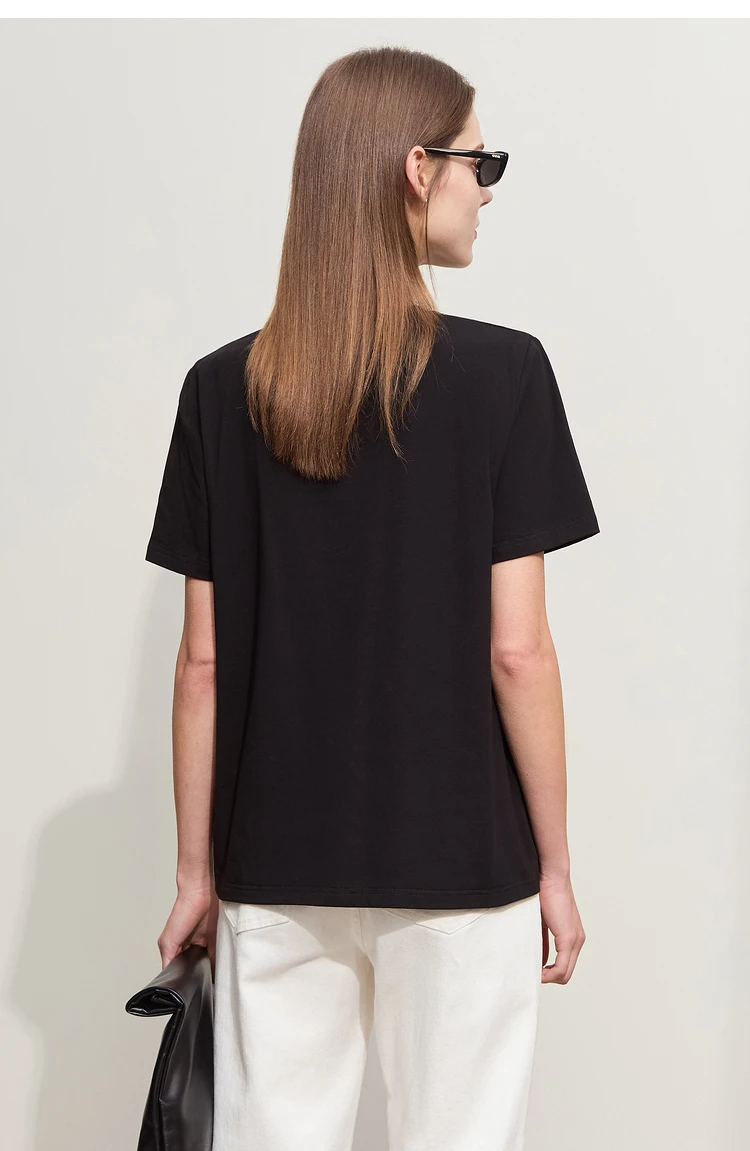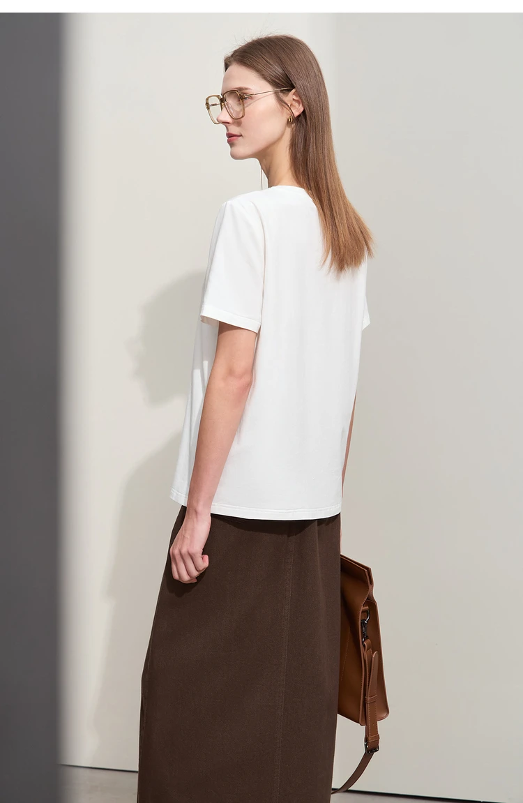 Amii Minimalism 2025 camiseta para mujer primavera nuevo cuello redondo Casual algodón bordado básico manga corta moda Tops señora 12422080