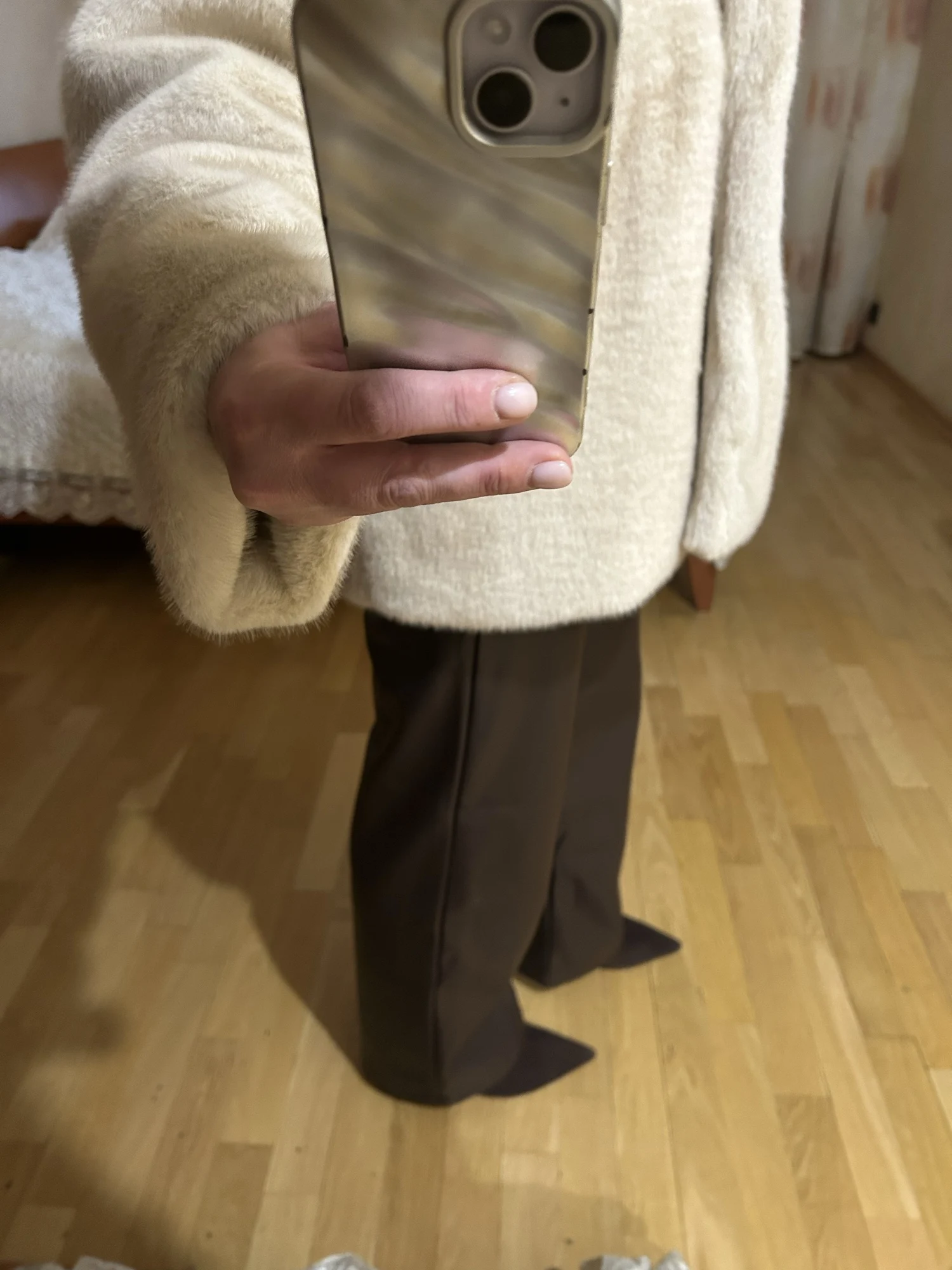 ¡Los pantalones son simplemente increíbles! ¡Muy elegantes y de alta calidad! Para una altura de 159 cm y un peso de 53 kg, la talla M queda perfecta. ¡Muy satisfecha! ¡Lo recomiendo!