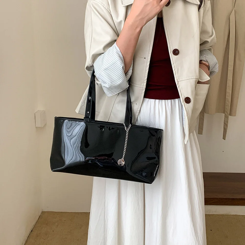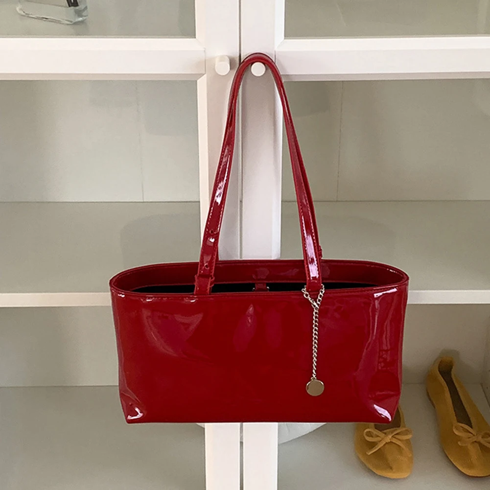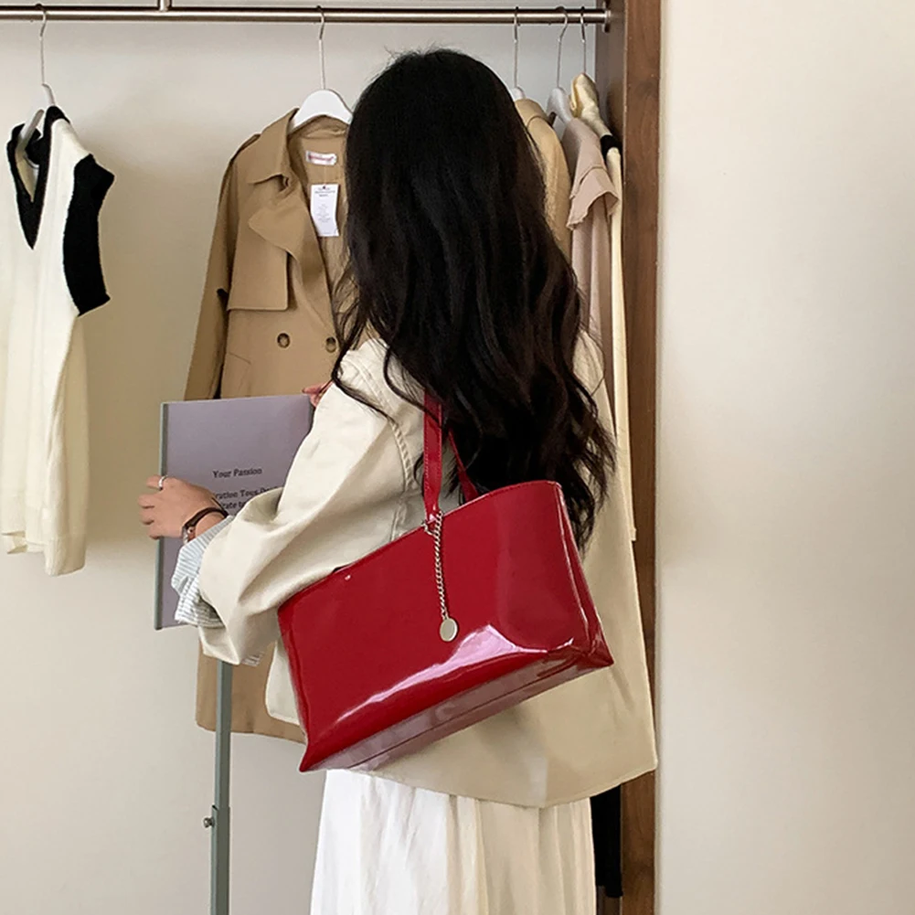 Bolso de mano de charol para mujer, bolso de hombro de moda de cuero PU, bolso de mano informal de gran capacidad, bolso de trabajo de viaje para mujer Características: Especificación: Nota: