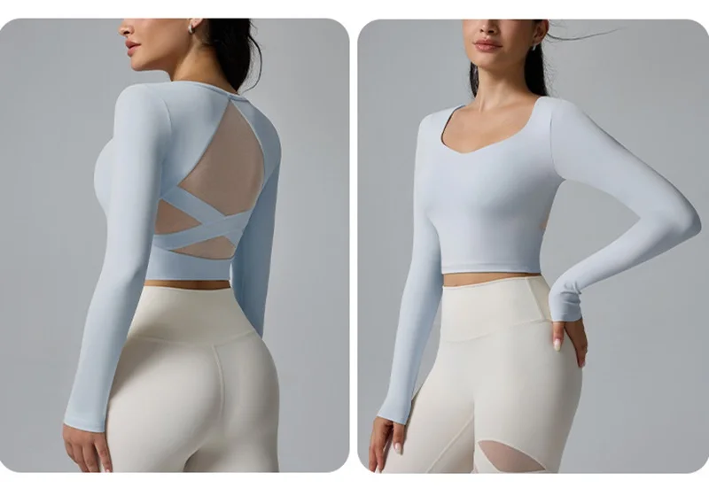 Camiseta de Yoga Blanca Cloud Hide de Manga Larga, Blusa de Pilates y Ballet, Top Deportivo Sexy para Mujer, Camiseta de Gimnasio, Fitness, Running y Entrenamiento
