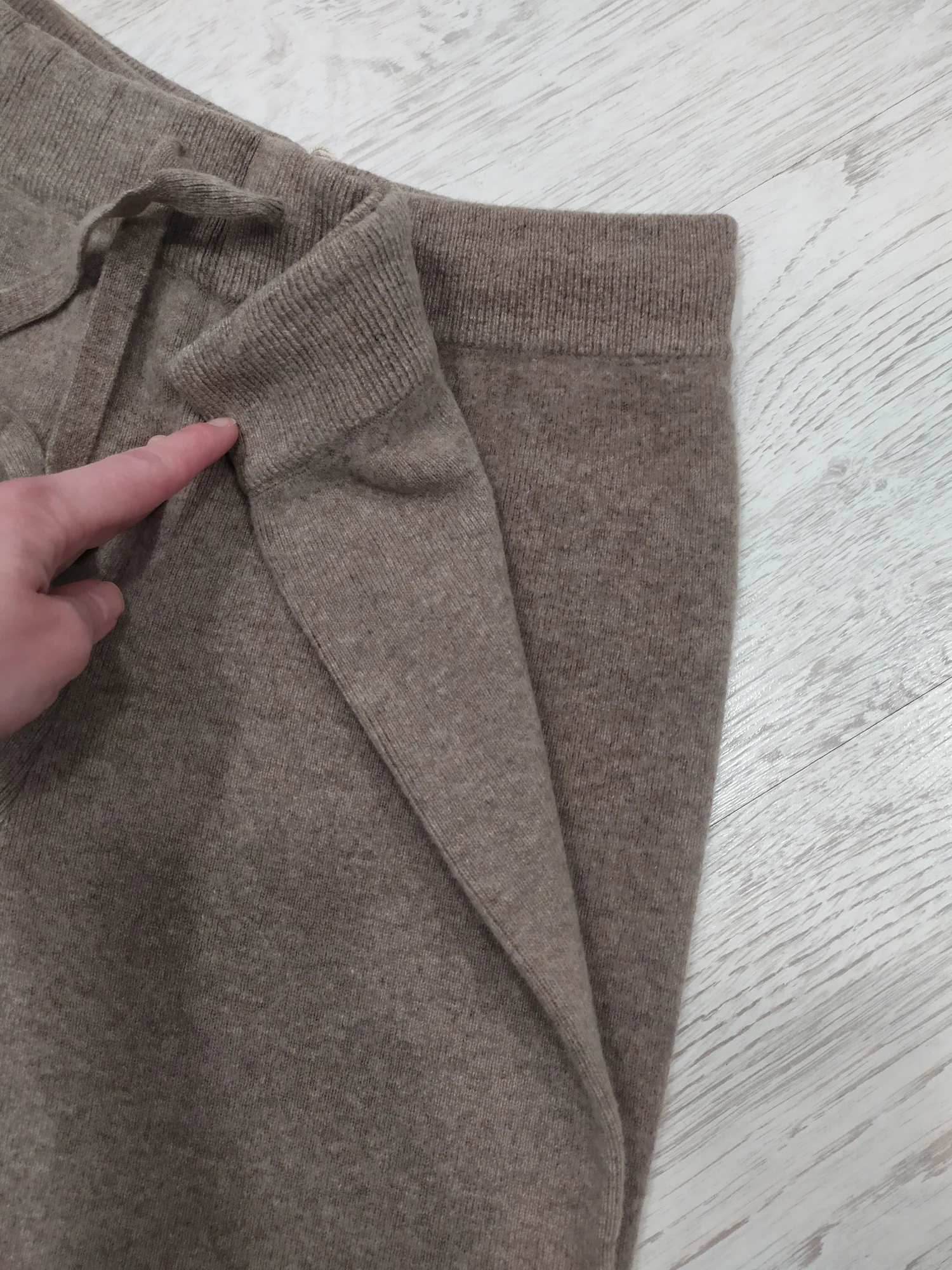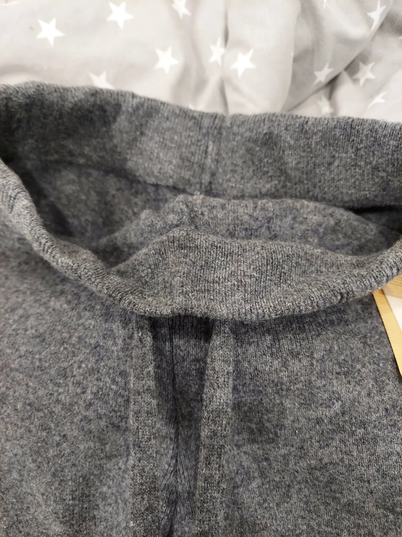 Esta es lana de buena calidad. Es bastante evidente cuando se engancha; uso medias gruesas y, en general, está bien. Las rodillas no se estiran ni se deslizan hacia abajo; los pantalones en sí son excelentes y cálidos. Sin embargo, para mi altura de 168 cm, la talla XL es 3-4 cm más corta. Dicen que puede estirarse después de lavarlo, pero aún no lo he probado.