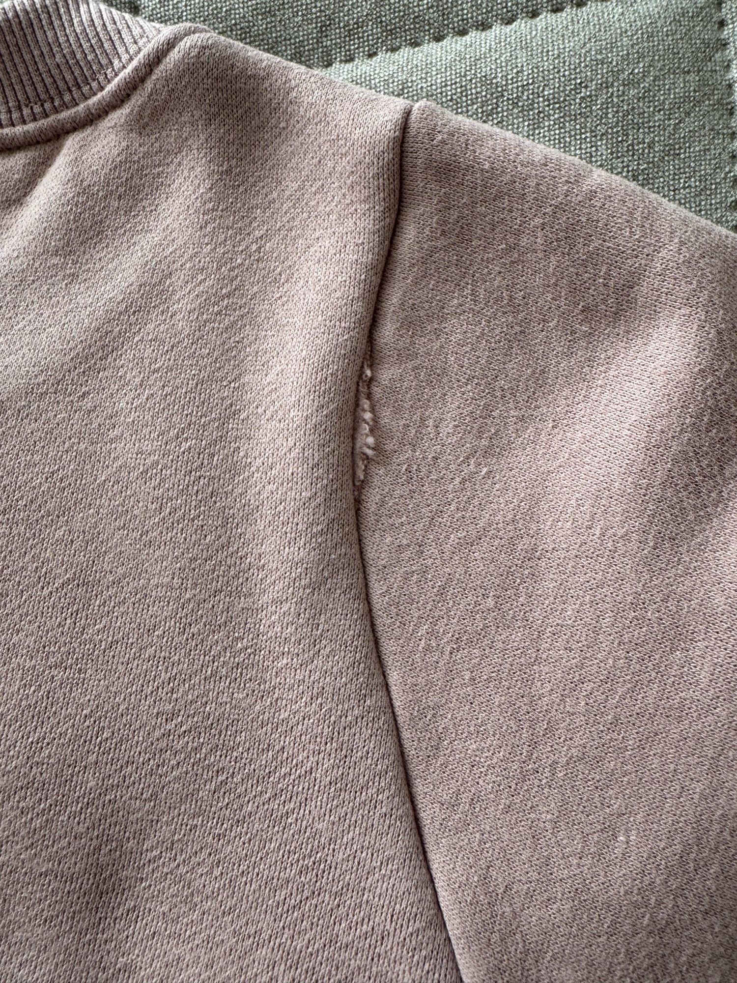 Buena sudadera, aislada con forro polar. La talla era correcta para 110, tomé 120 para que fuera oversize, pero también pesa 24kg.