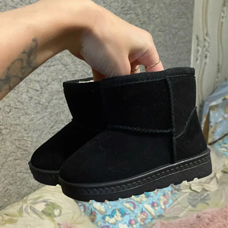 Children Snow Boots Winter Cute Warm Fashion Anti Slip Shoes Kids Boys Girls Leisure Thick Fur Platform Flat Short Boot Sneakers