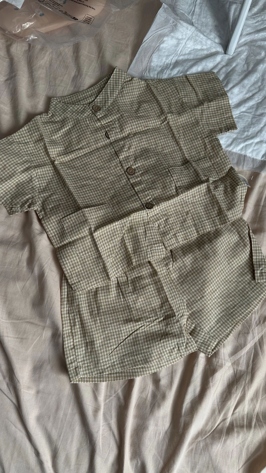 traje de buena calidad Tomé 2 trajes. Para el niño de un año, talla 2T y para el mayor, talla 4T. Las prendas de gran tamaño se ven enormes, pero quedan bien.