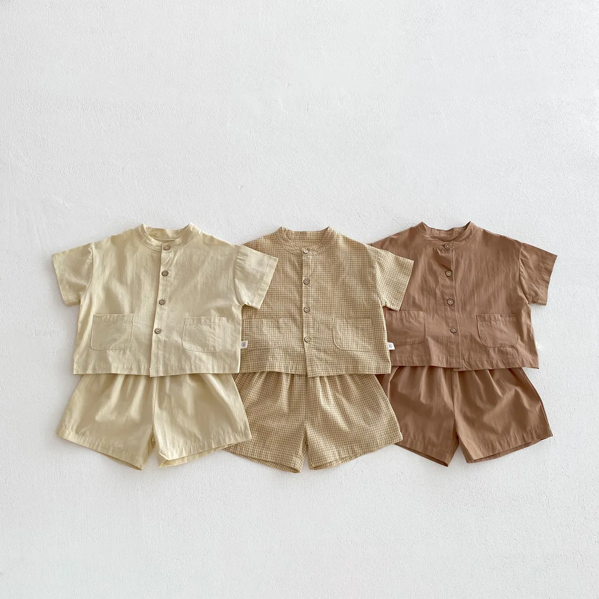 Conjunto de camiseta de manga corta y pantalones cortos finos para niños, traje de playa informal, cuello levantado, fresco, verano, 2 piezas