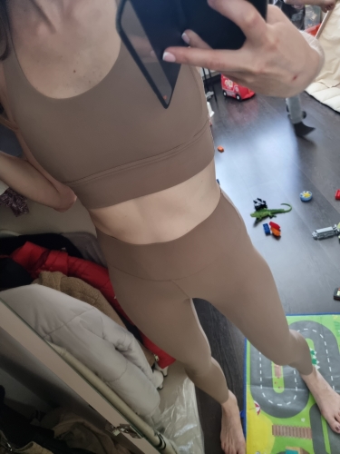 ¡¡Excelente traje para deportes!! La parte de arriba queda perfecta, no se desliza, no se retuerce. Para pechos grandes, la talla S será pequeña. ¡¡Los leggings son delgados pero gruesos, tienen un bolsillo oculto!! ¡¡Estoy satisfecha!! Genial para practicar Pilates