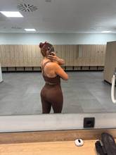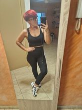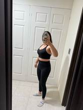 Este conjunto me gustó mucho hace buena figura la tela estira y no aprieta soy talla m pero pedí L porque no me gusta nada apretado y me quedó perfecto a tener en cuenta el top me quedó bien porque tengo busto grande si tienes busto pequeño no aconsejo pedir una talla más además tiene almohadillas que es perfecto, pediré más colores