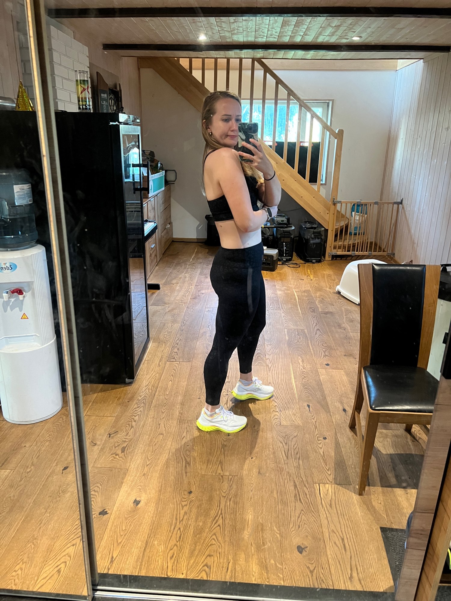 Para parámetros 88og 71 de 95ob, tomé la talla M. Se ajusta bien en el pecho, la talla S habría sido demasiado pequeña. Pero los leggings quedan sueltos; me gustaría que fueran una talla más pequeña. La calidad es buena. Se estiran bastante.
