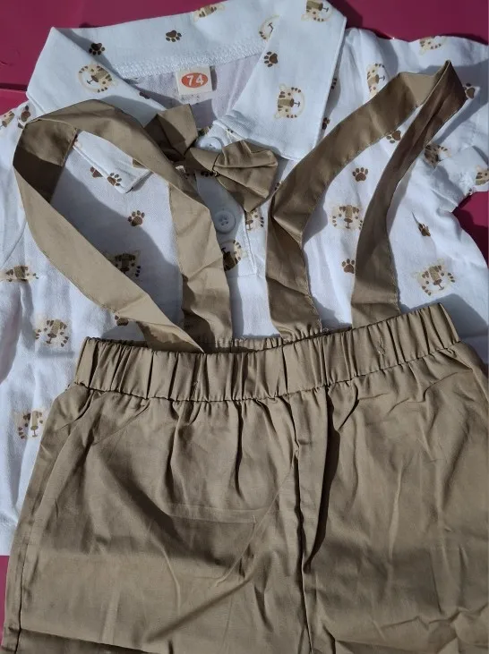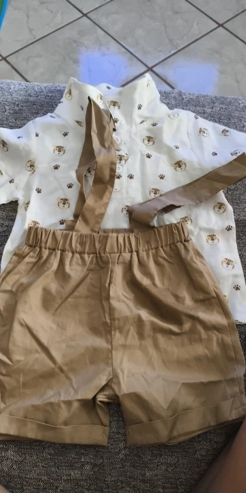 Mi bebé tiene 1 año y le quedó muy bien, me gustó mucho la tela de la camisa y el short también, lo volvería a comprar