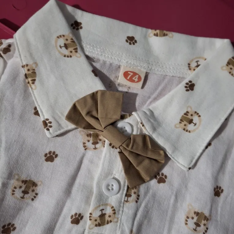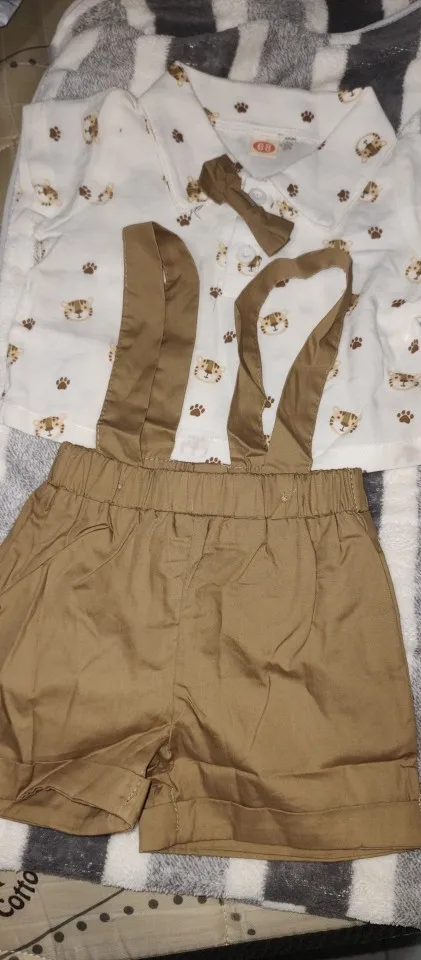 Conjunto de ropa para niño pequeño, 2 uds., estampado de tigre, manga corta con lazo y pantalones cortos con tirantes, traje informal para fiesta de cumpleaños para niño pequeño de 0 a 2 años