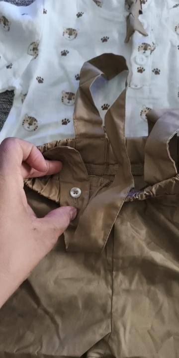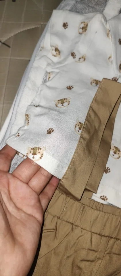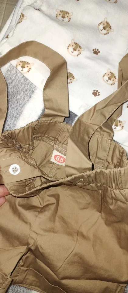 Está bien por el precio~ No tiene elasticidad~ La calidad tampoco se ve muy buena~ Pero lo compré por 4000 wones, así que creo que es excelente por el precio. Dado que el bebé crece rápido, pensar que solo lo usaré por una temporada es bastante bueno~ Las prendas son bonitas.