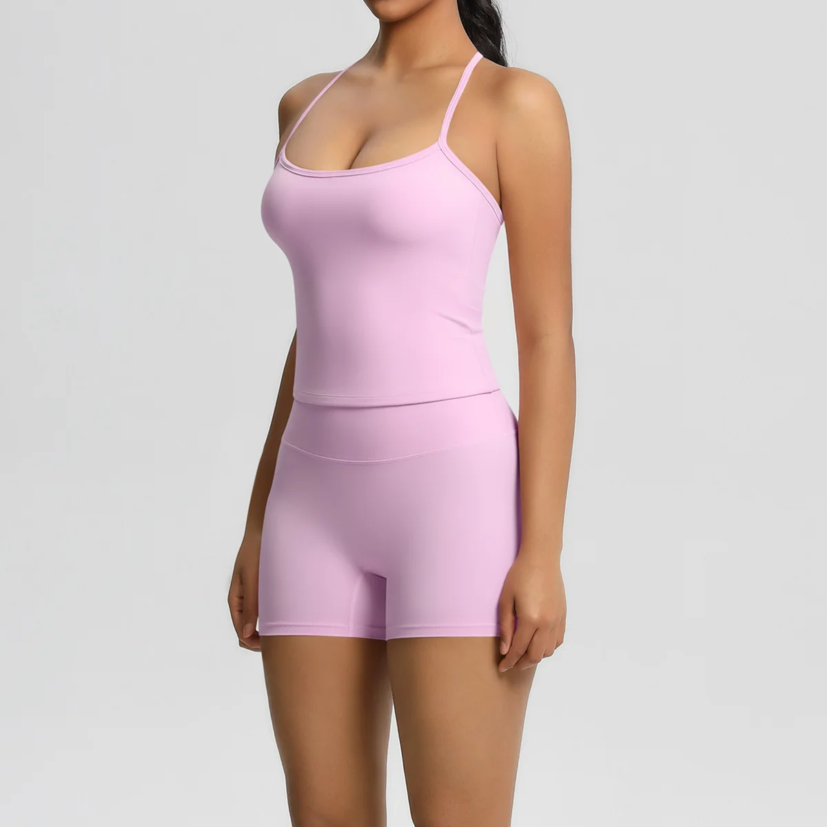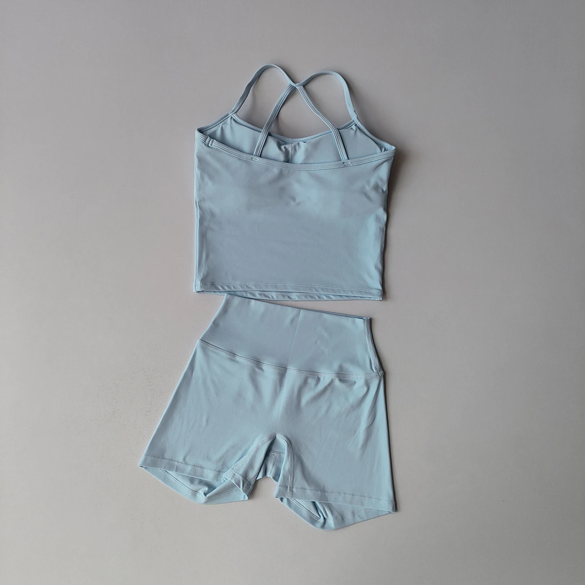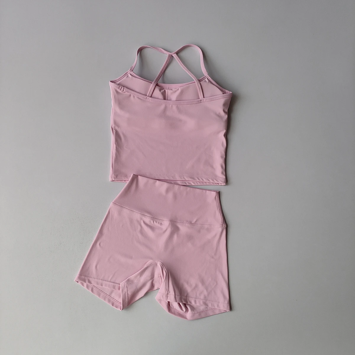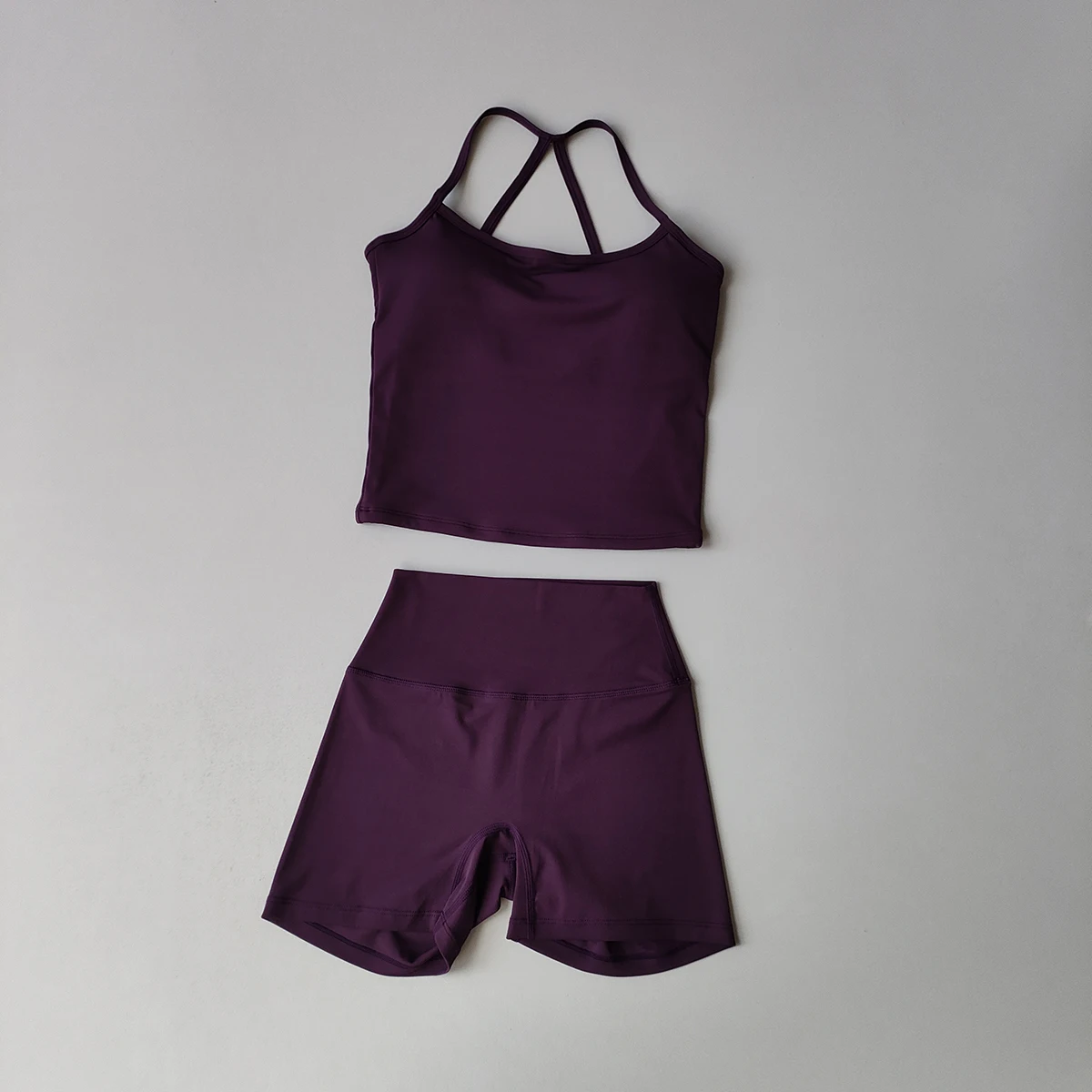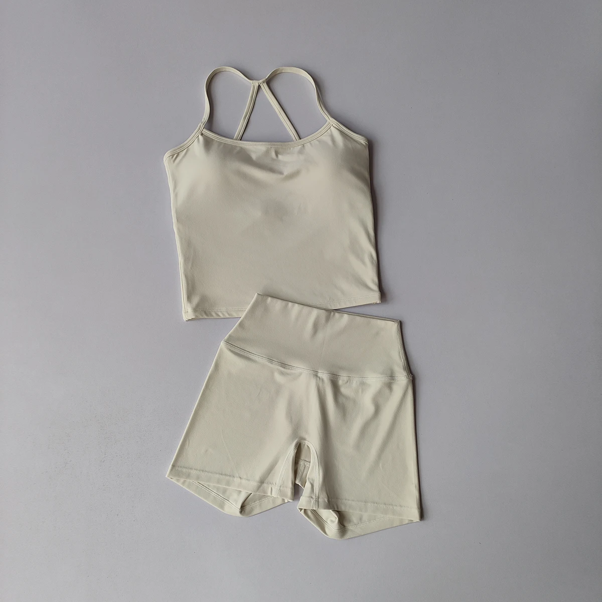 Conjunto de Top de tiras palangre, conjunto de gimnasio para Yoga, Sujetador deportivo sin espalda sin costuras, camisetas sin mangas, mallas de elevación de cadera, conjuntos de pantalones cortos de gimnasio, conjunto deportivo