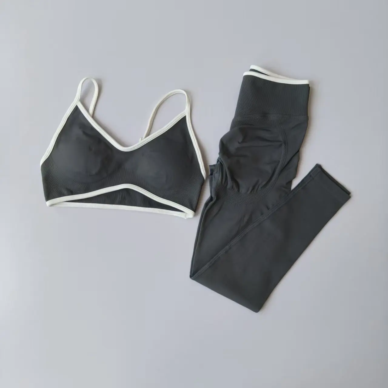 Conjuntos de mallas sin costuras para mujer, sujetadores y mallas deportivas con tiras, mallas esculpidas de cintura alta, pantalones para correr, trajes de gimnasio, 2 uds.