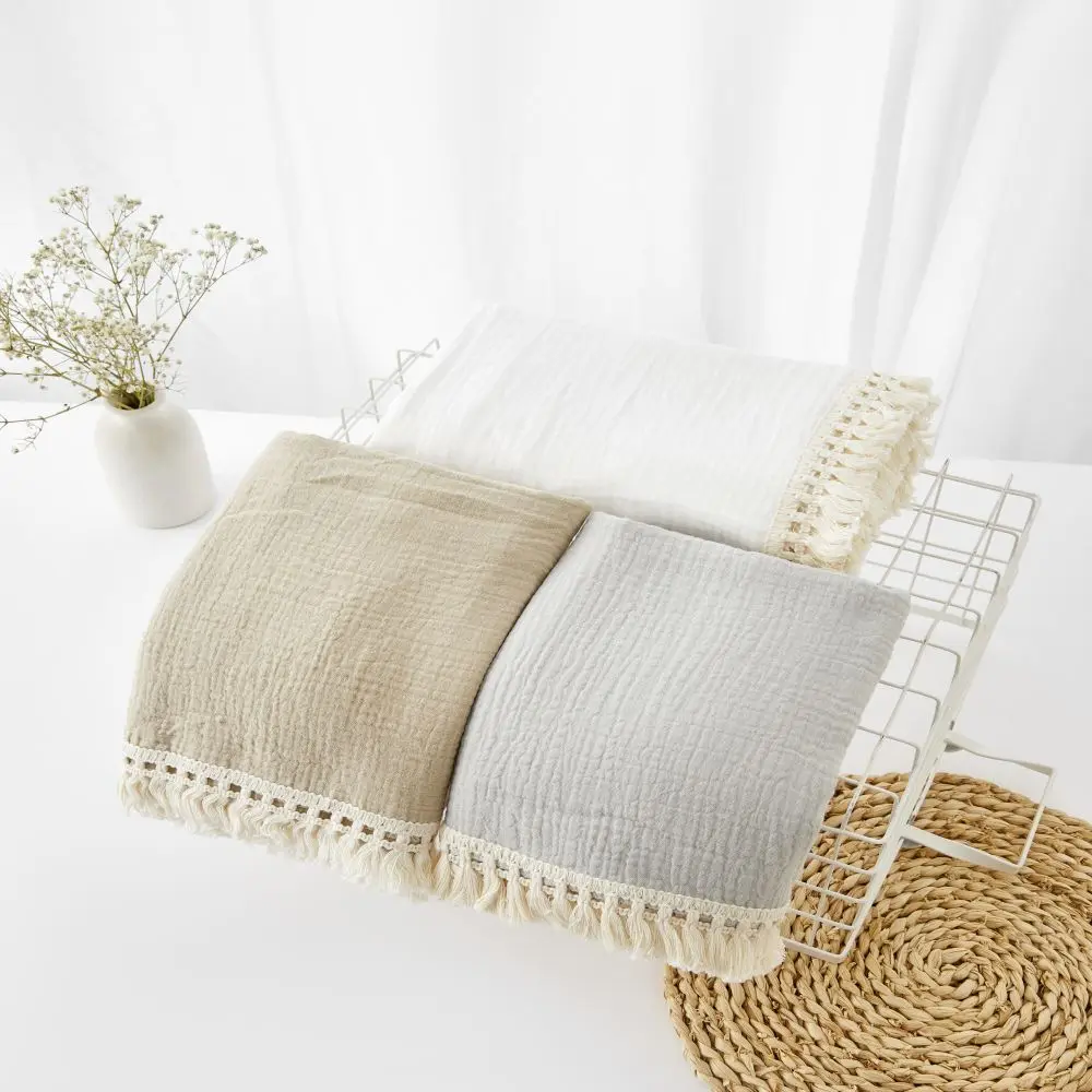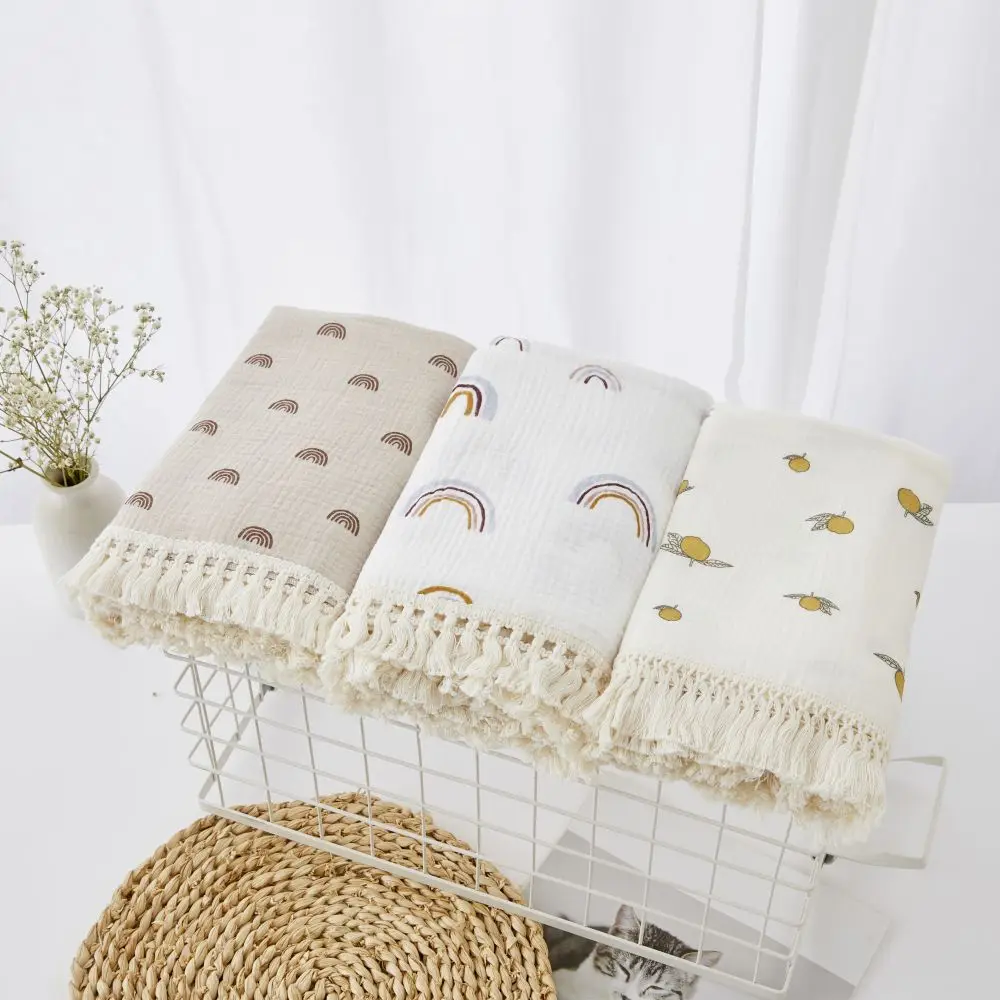Cotton Muslin Swaddle Blankets for Newborn Baby Tassel Receiving Blanket New Born Swaddle Wrap Infant Sleeping Quilt Bed Cover