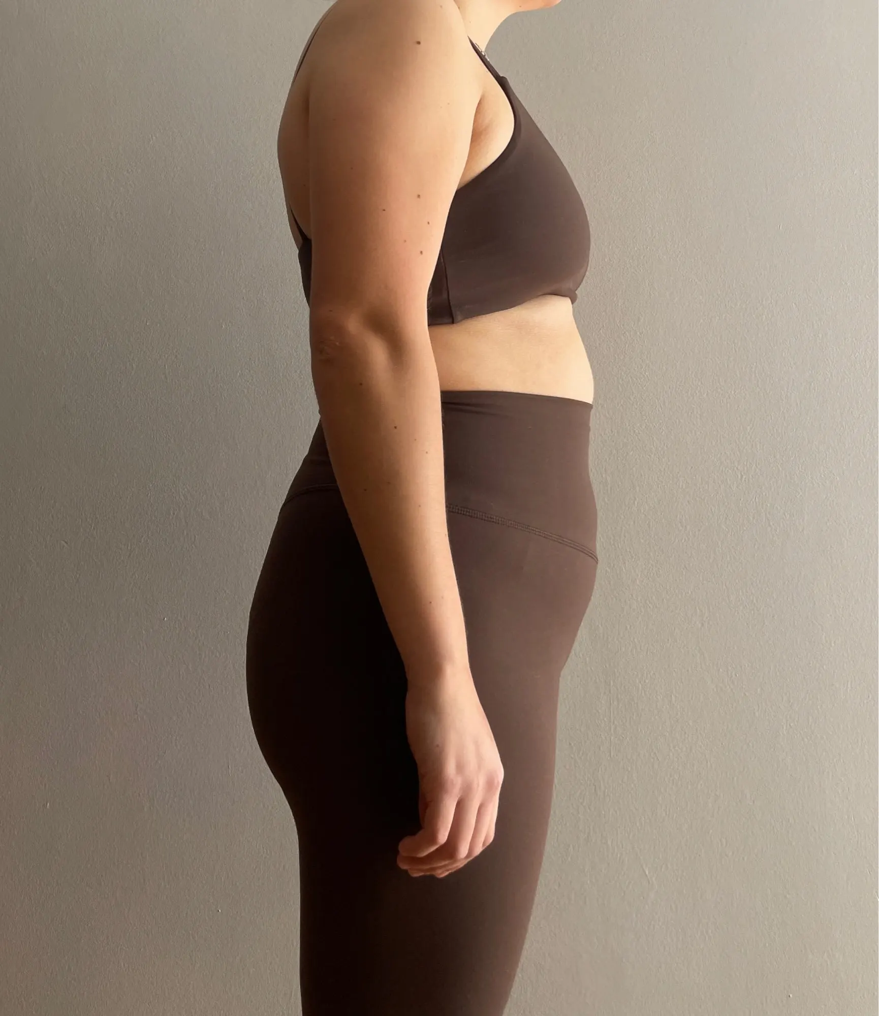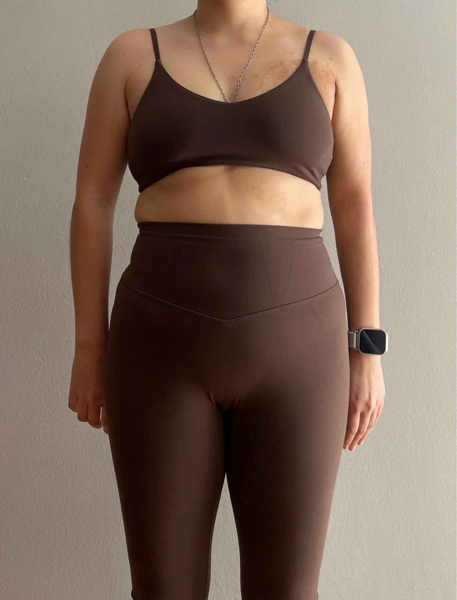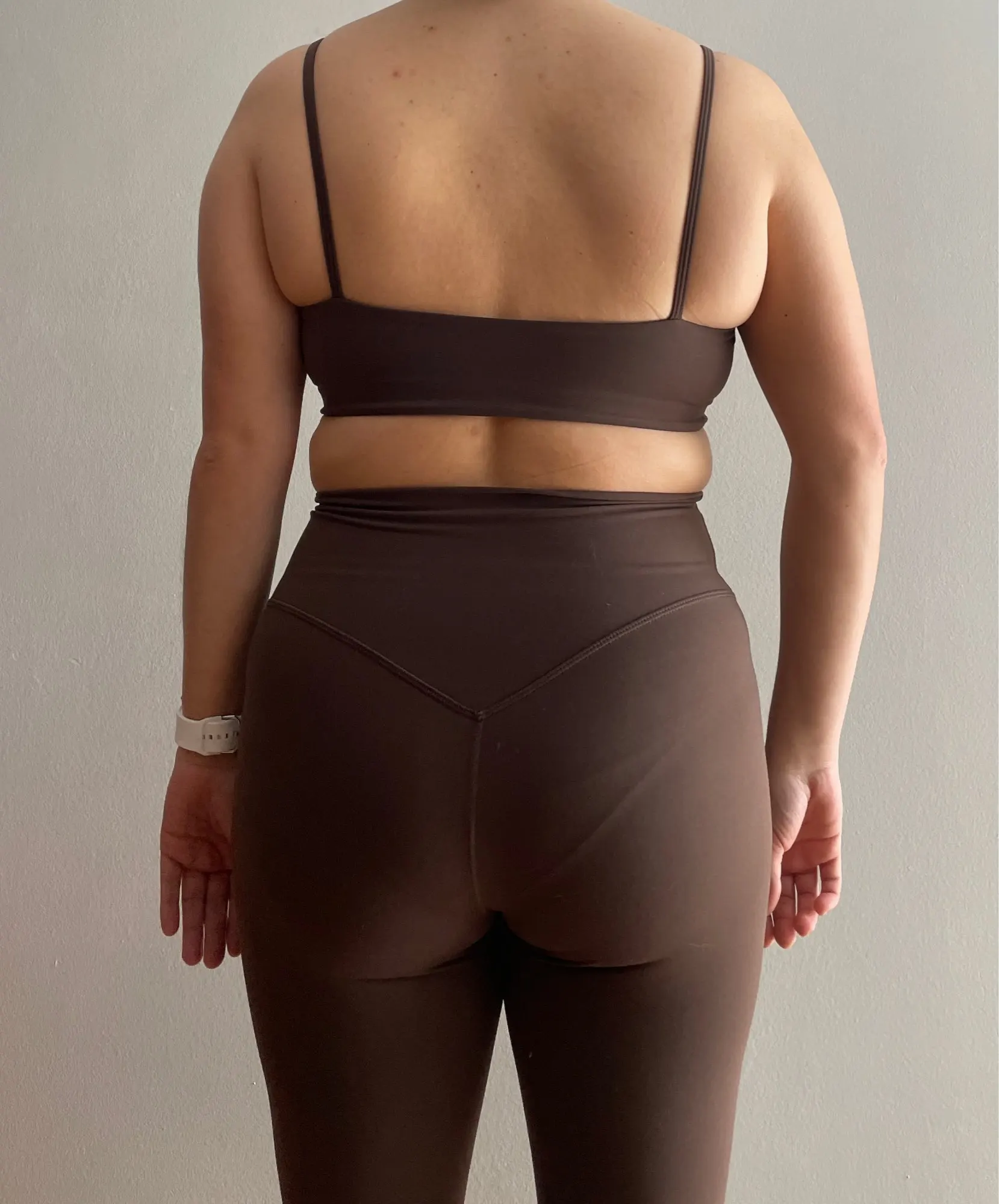 ¡La calidad es increíble! Tengo un lululemon y es exactamente el mismo material. ¡Definitivamente pediré otro juego! ¡Gracias! Hermoso color chocolate 😍