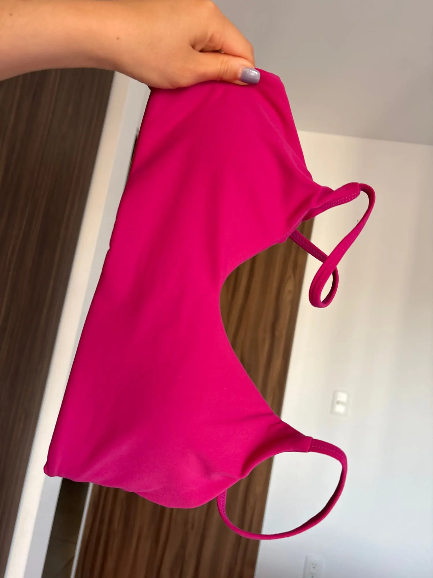 Genial, agradable al tacto, se ajusta bien para un tamaño de pecho de 85-100, es un poco volante, pero las mallas son preciosas.