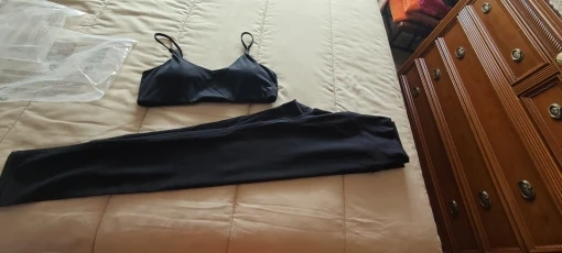 Conjunto deportivo de mujer para hacer ejercicios, muy buena calidad, me ha gustado mucho y queda muy bonito.