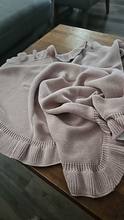The blanket is of good quality, pleasant to the touch, the color is pale powdery. Delivered quickly.