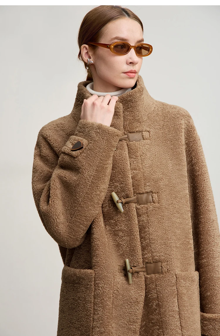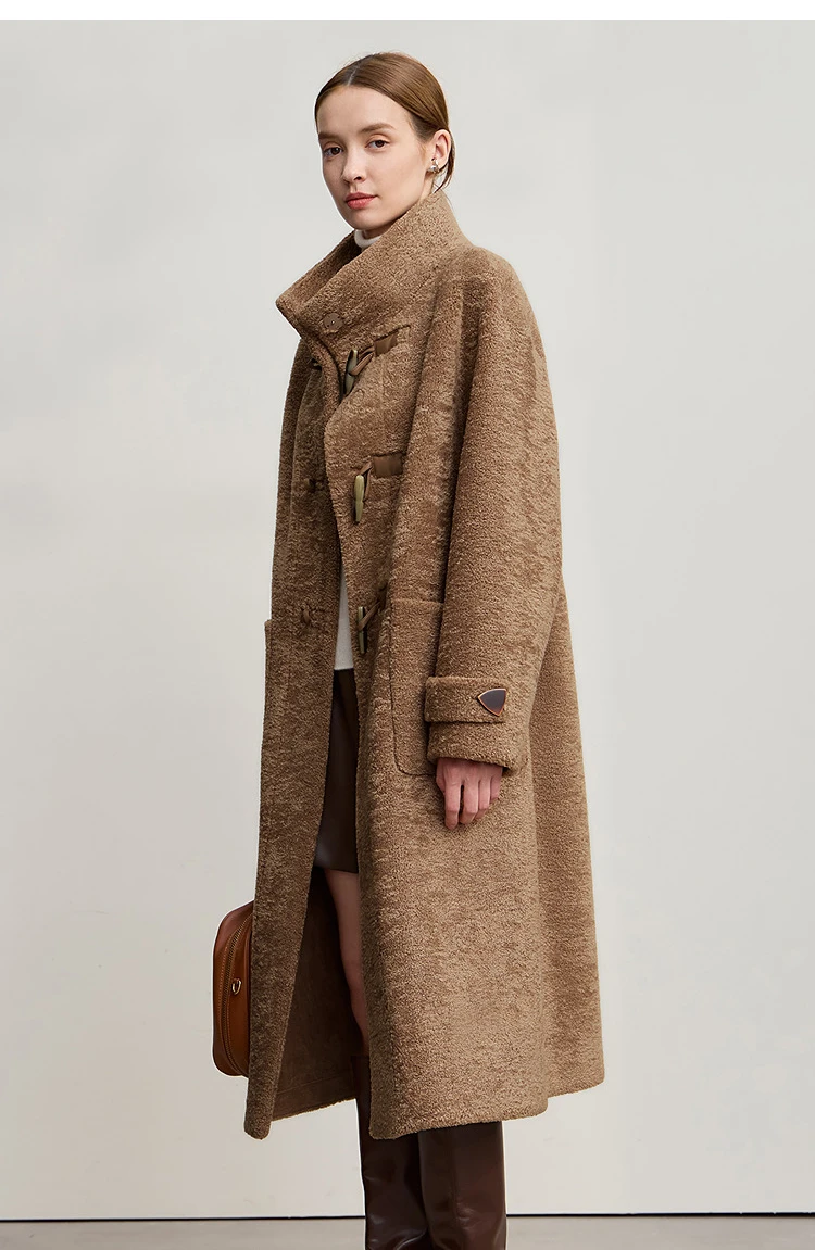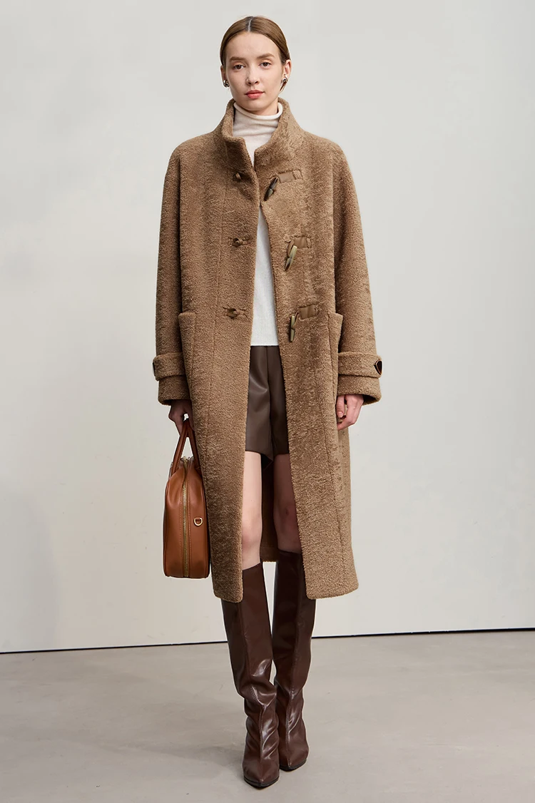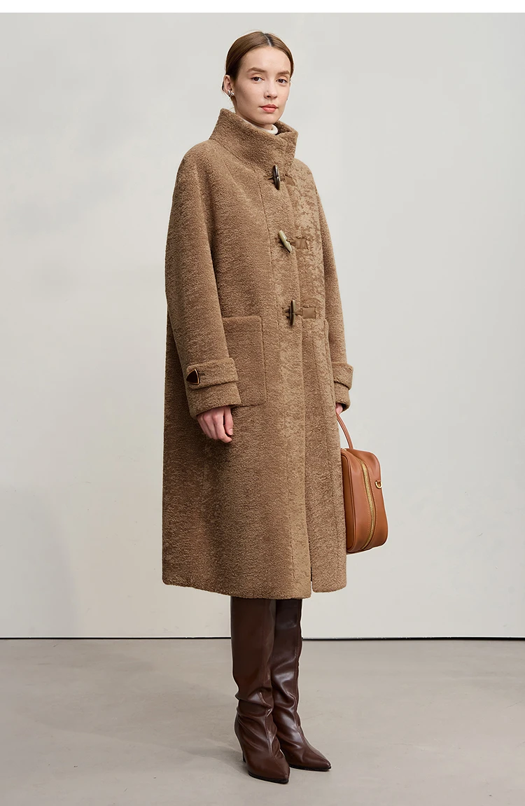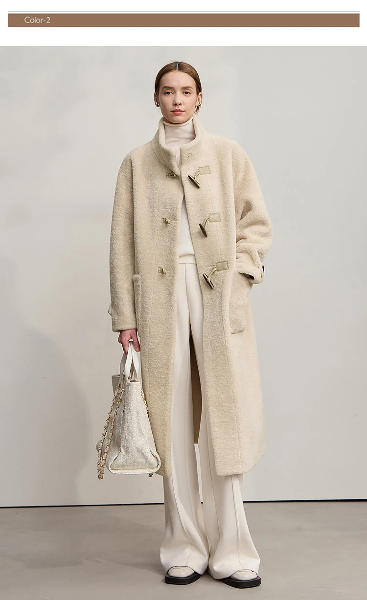 Amii abrigo de mujer 2025 invierno nuevo abrigo largo suelto de manga larga con cuello medio alto para mujer ropa de abrigo cálida elegante recta 12554010
