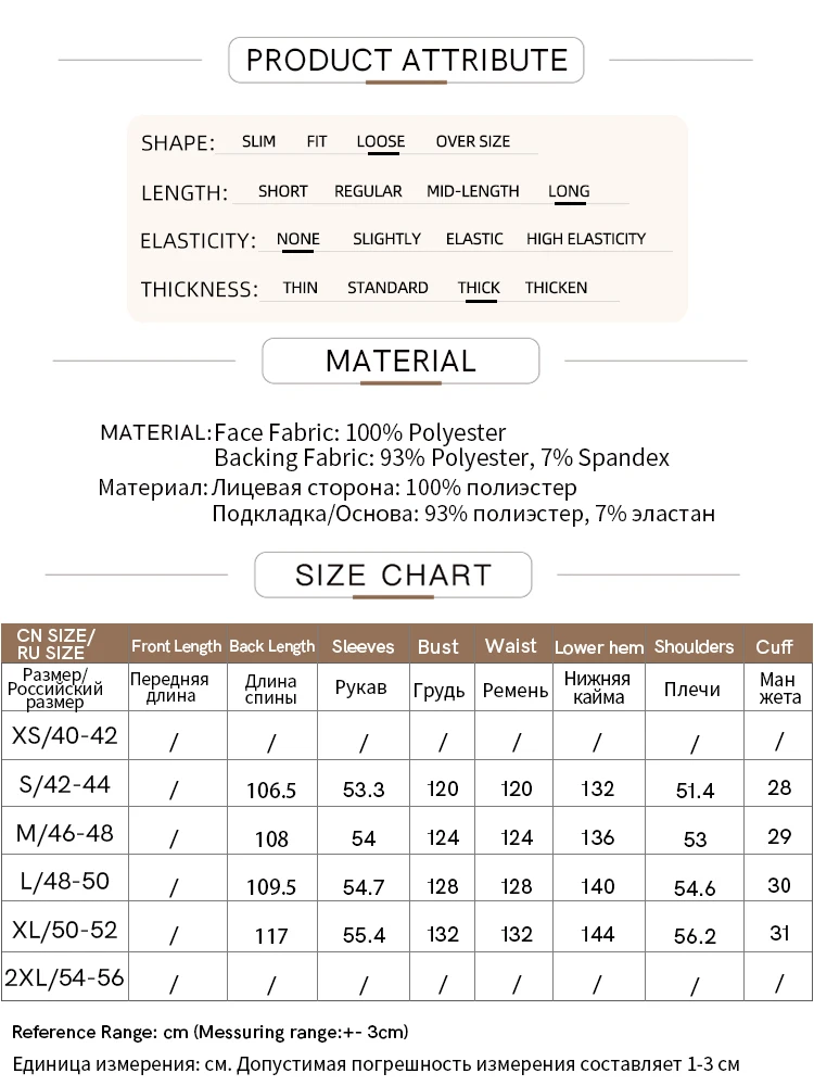 El abrigo no fue enviado porque es imposible determinar la talla exacta según la tabla de tallas; es bastante extraño con medidas enormes para el pecho. Según el vendedor, este abrigo se adapta a cualquier talla, lo que significa que me quedaría bien en una talla 48 y M o más grande, pero no entendí cómo era posible. Le dije mi altura y medidas, pero no pudo aconsejarme sobre M, L, XL o XXL, y no envió el pedido. El dinero fue reembolsado a través de una disputa.