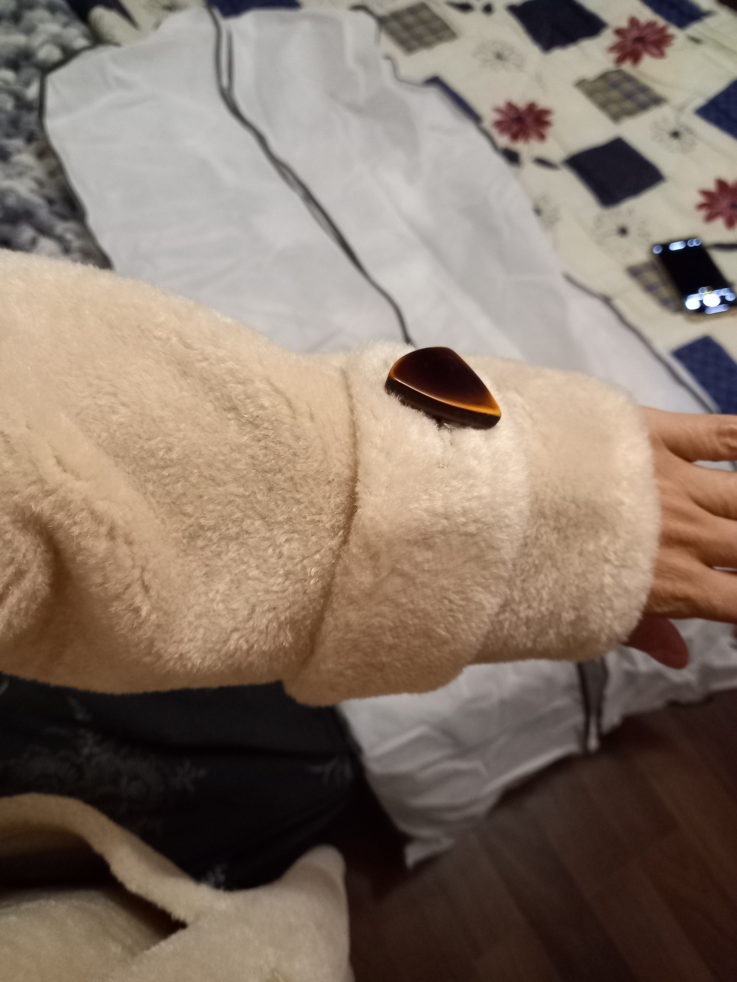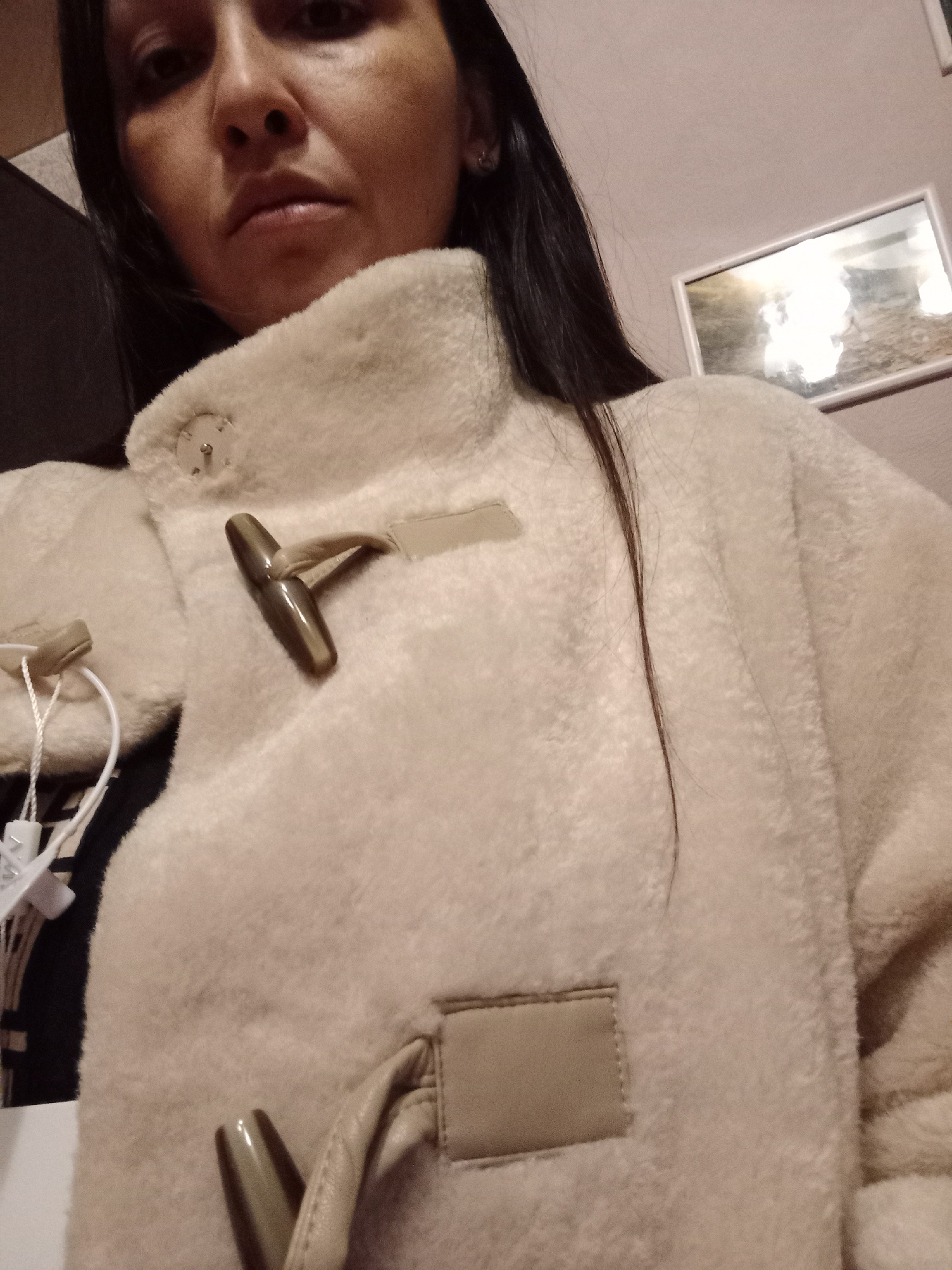 Un abrigo maravilloso, adecuado para climas a partir de +5 grados y preferiblemente en condiciones de clima seco. Caminé con él a -4 grados bajo cero; si es para pasar del coche al edificio, está bien, pero estar afuera es frío, así que mi veredicto es que solo es adecuado para +. El color es lechoso, el cierre de estilo chino me resulta desconocido, pero se ve elegante; el cuello se mantiene en su lugar con un botón. Para parámetros 90-77-90, queda suelto, pero no elegiría algo más grande ni más pequeño. La tabla del vendedor es precisa; todo depende del ajuste que prefieras. Usé un vestido de acrílico debajo; podría estar mejor aislado, pero hay suficiente espacio. Las costuras y el acabado son muy prolijos; si no fuera por el cierre, uno podría pensar que es reversible. Lo compré en Chiang Mai por 6500, ahora es ciertamente más caro, pero vale la pena; el precio en la etiqueta es de 999 yuanes.