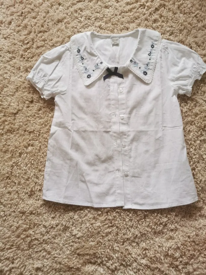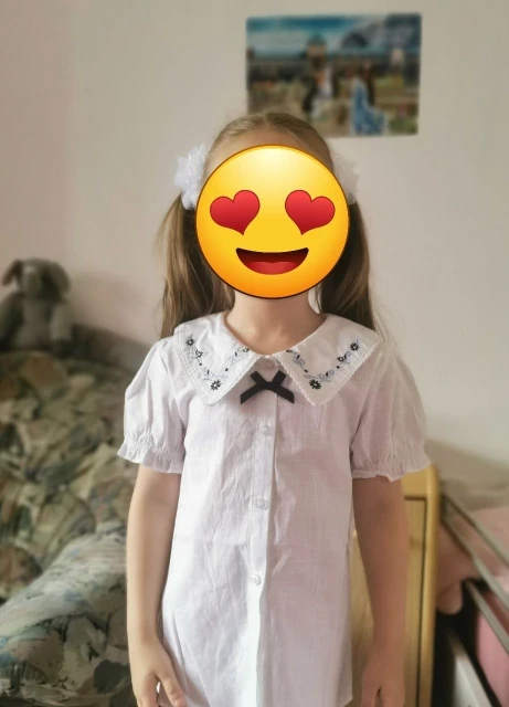 La blusa es muy bonita, hecha de tela natural, todas las costuras son uniformes, sin olor extraño, la talla queda bien (la tomé un poco grande para una altura de 122 cm) coincide completamente con la descripción. Realmente me gustó, lo recomiendo. Lo conseguí con descuento usando monedas. Muchas gracias al vendedor. 🌹 👍