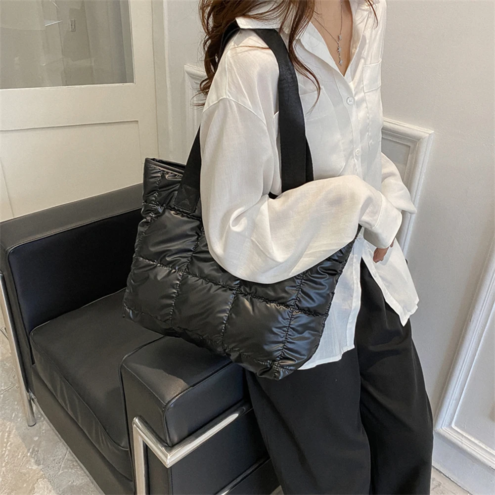 Bolsos de mano de moda para mujer, bolso de hombro con asa superior acolchado de algodón de gran capacidad, bolso de mano portátil con rombos, acolchado sólido para el trabajo diario de oficina