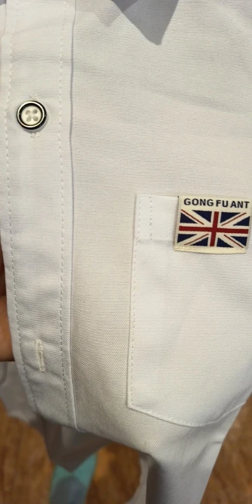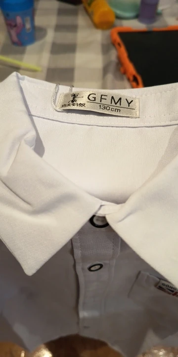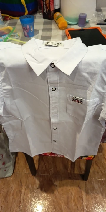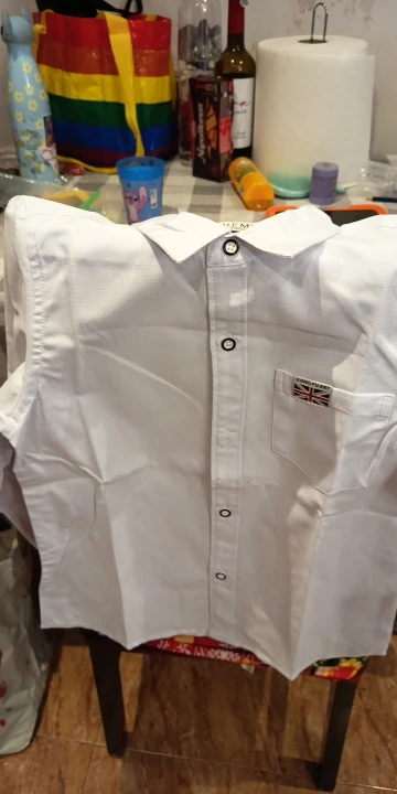 Una camisa maravillosa hecha de algodón grueso. Queda bien para una altura de 140 cm. No se arruga mucho.