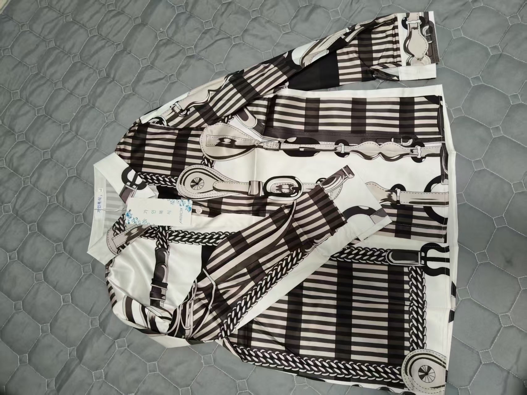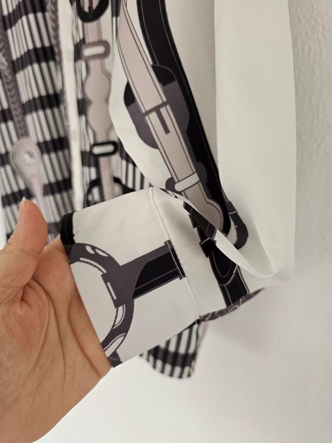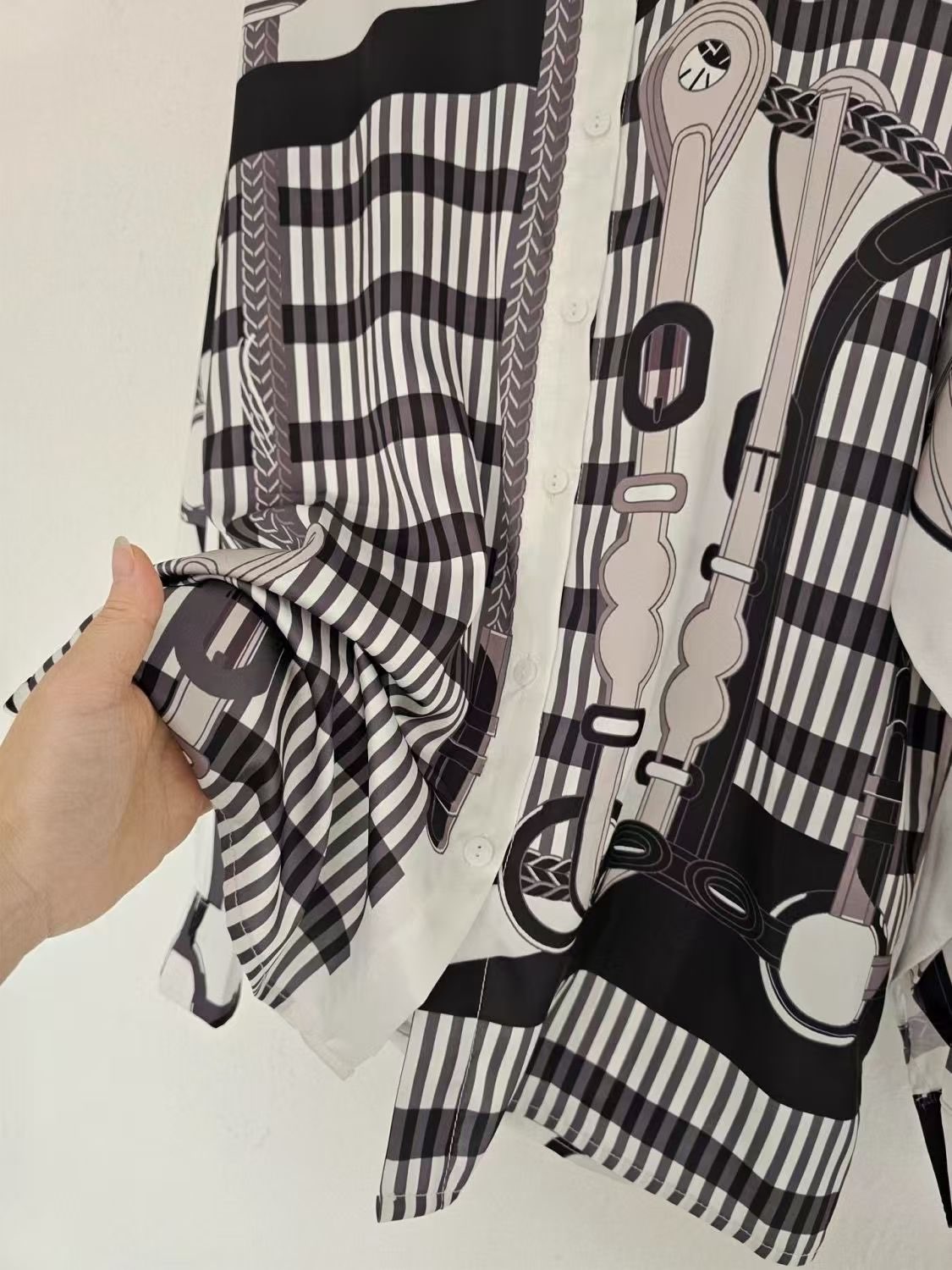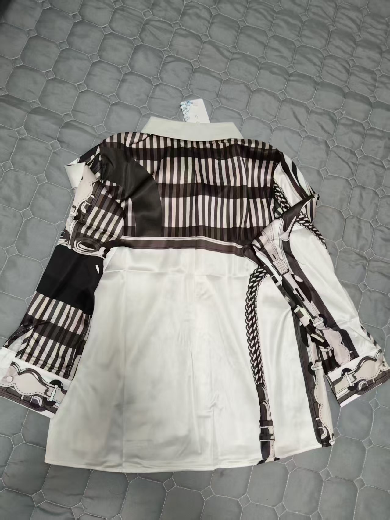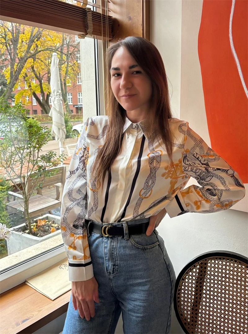 Blusa hermosa con patrones extravagantes. La calidad es buena y la entrega fue rápida. Excelente relación calidad-precio. ¡La compraría de nuevo sin dudarlo!