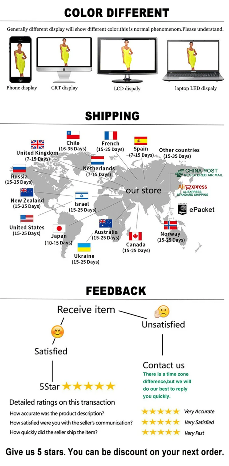 - If you did not receive the product within the guaranteed time( 45 days not including 2-5 day processing) you can request a refund or a reshipment.