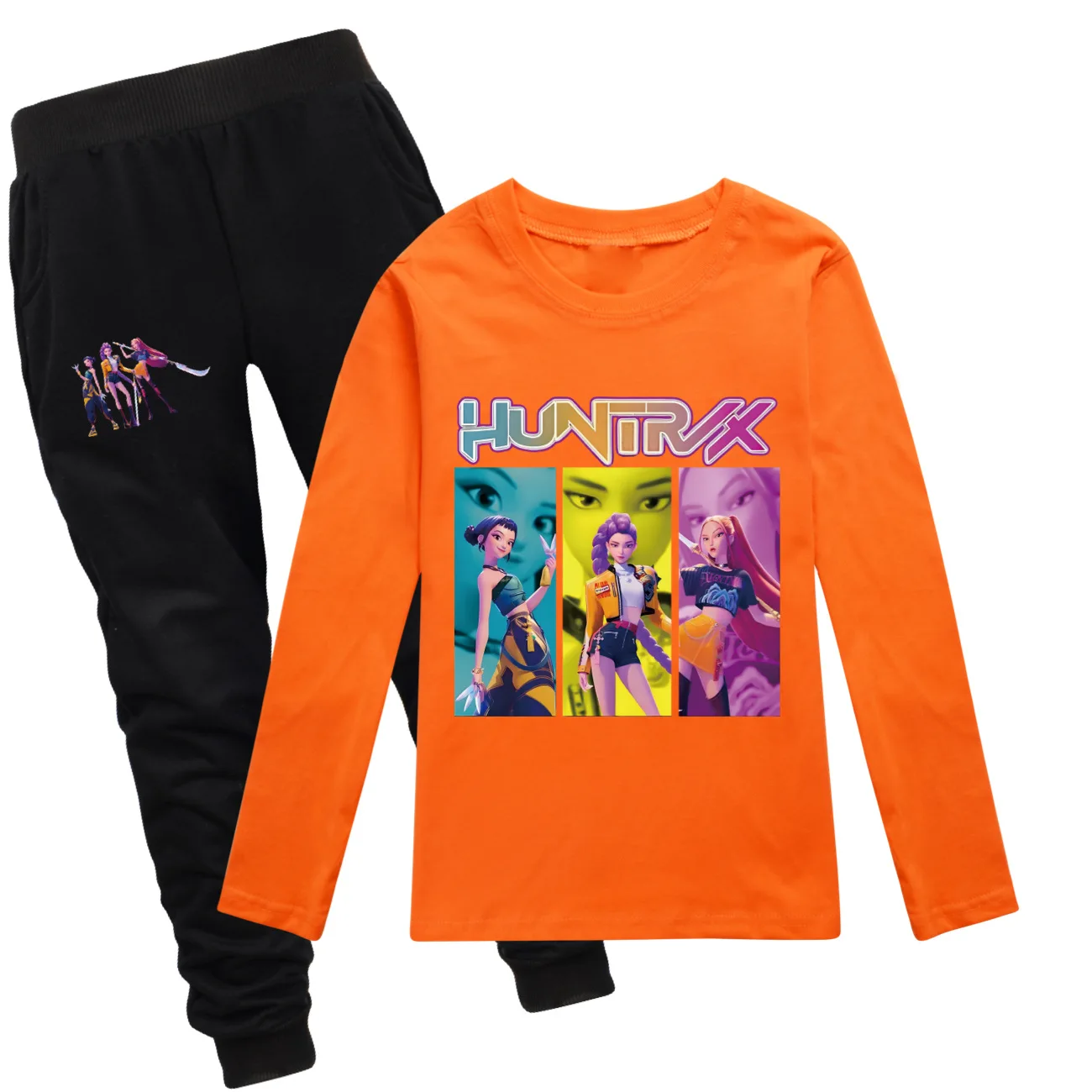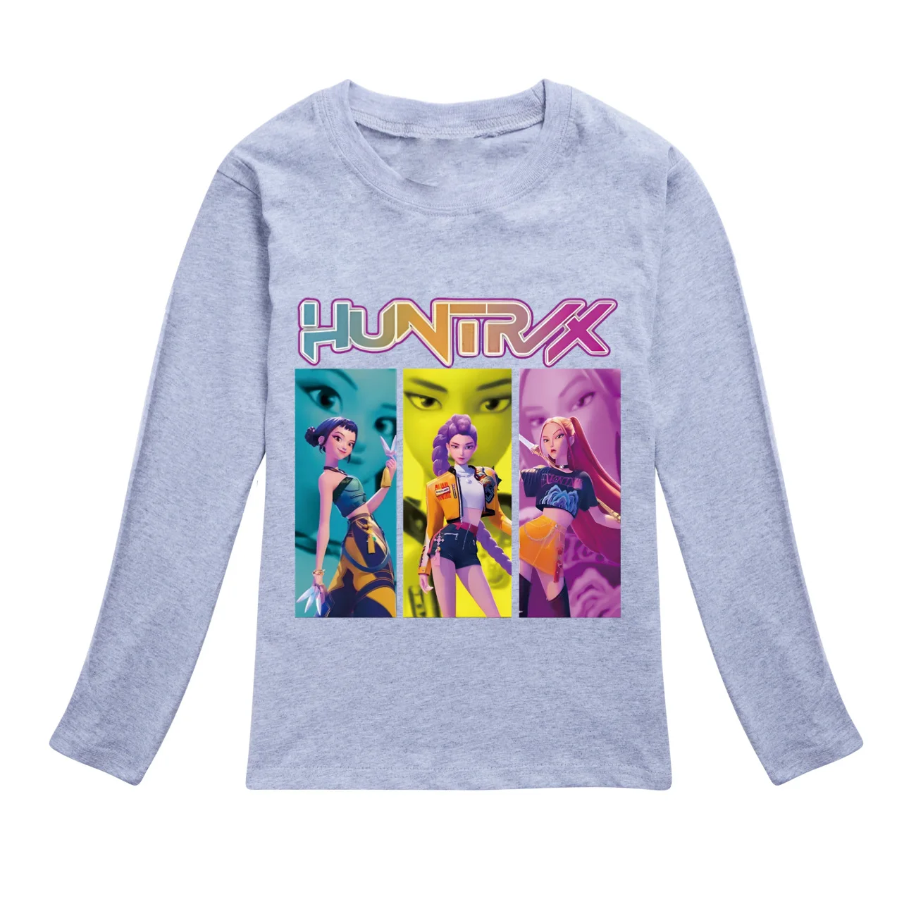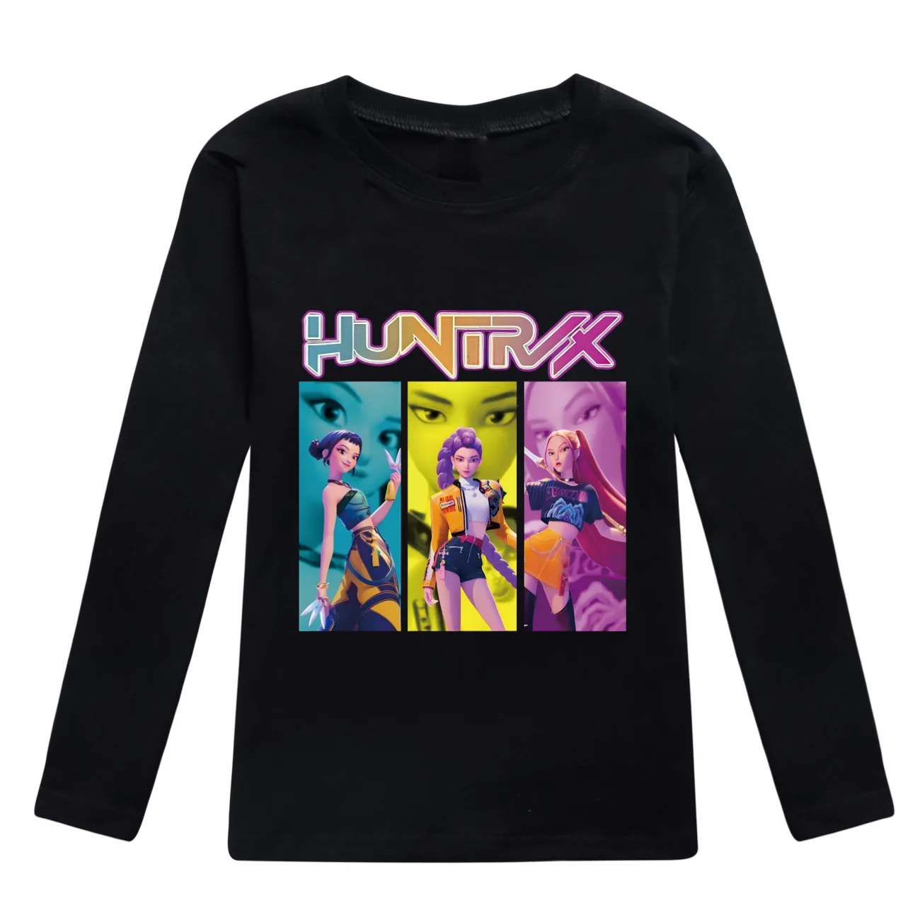 Camiseta KPop Demon Hunters Huntrix, sudadera con cuello redondo para niños y adolescentes, ropa de calle de moda para niñas pequeñas, camisetas de algodón de manga larga