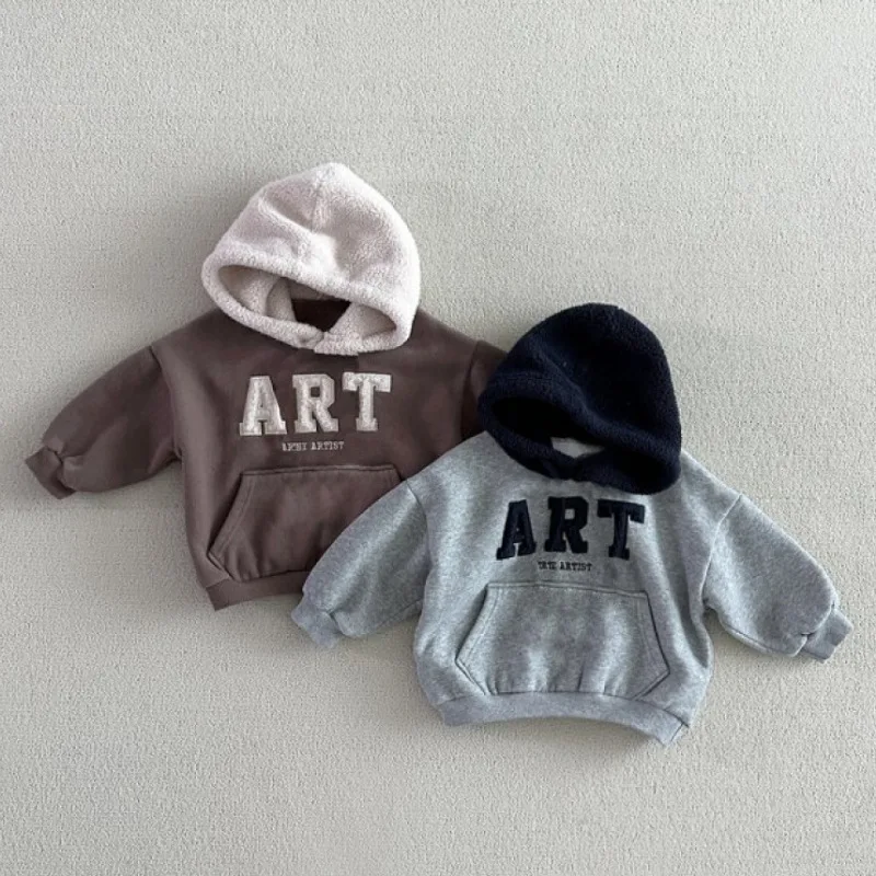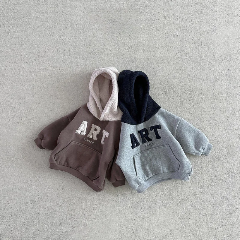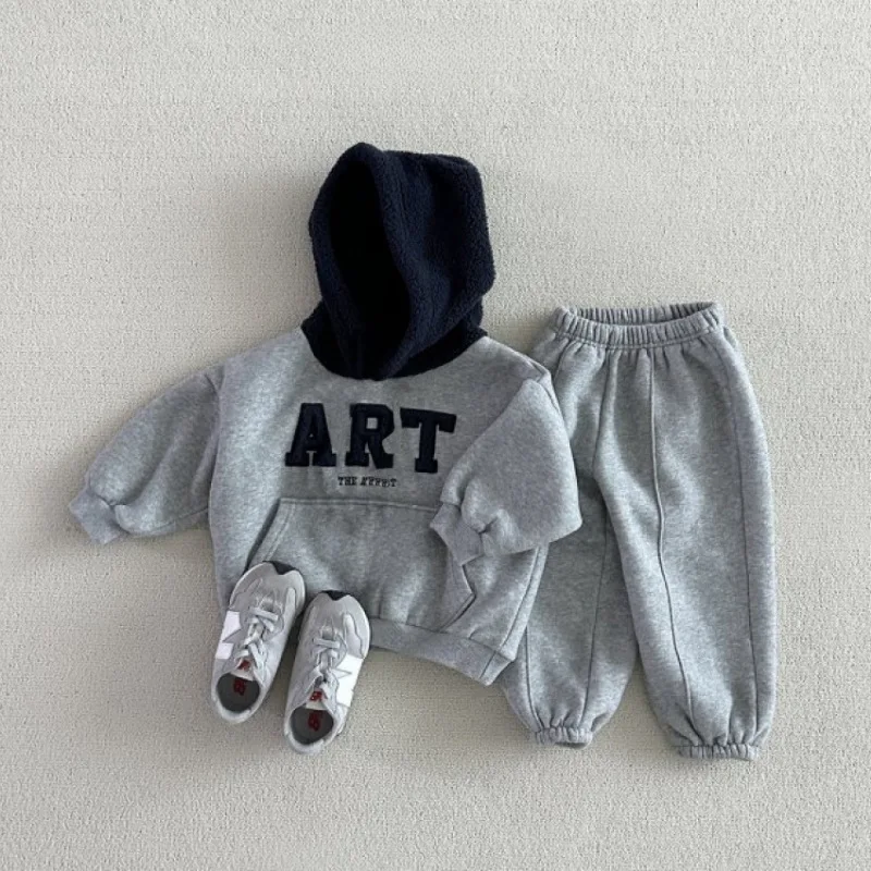 Conjunto de ropa de abrigo para niños y niñas, Sudadera con capucha de lana y pantalones, traje de 2 uds., chándal con letras para bebé, trajes deportivos para niños, novedad de invierno de 2025