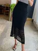 Falda de mujer faldas largas de verano Midi cintura alta niñas sólido Vintage Skrits Sexy una línea falda Harajuku Y2k Kawaii encaje plisado