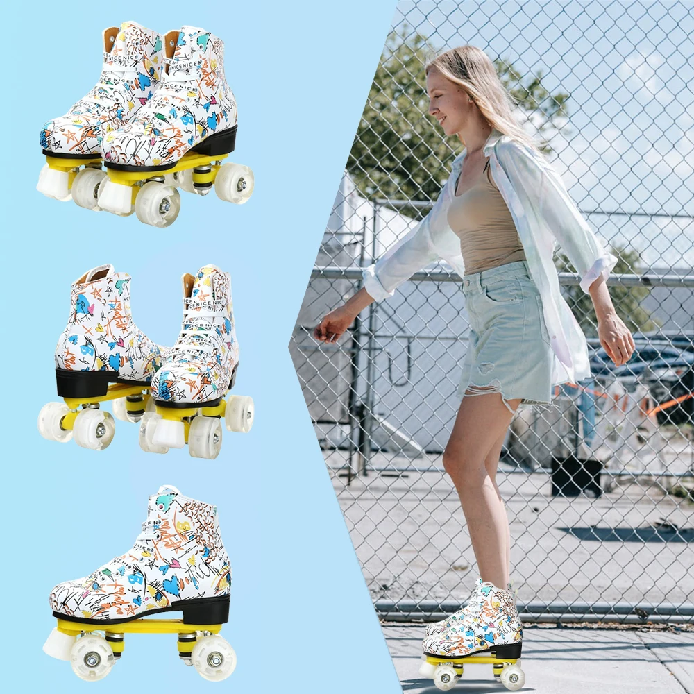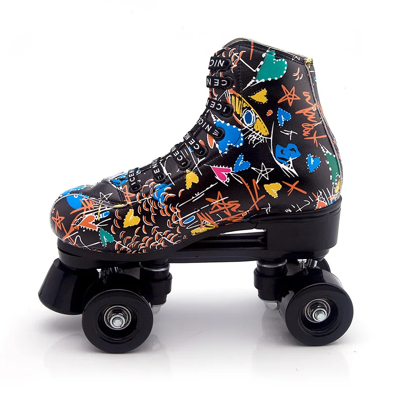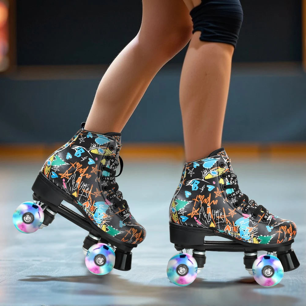 Graffiti para adultos, hombres, niños, mujeres, doble fila, zapatos de patinaje, patines con Flash de cuatro ruedas, patines, patinaje, pista doble