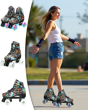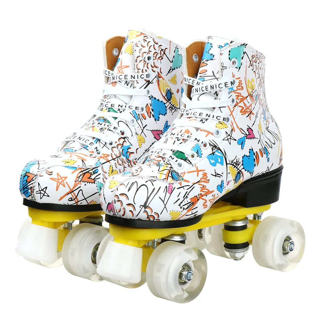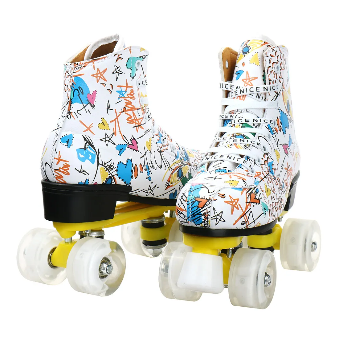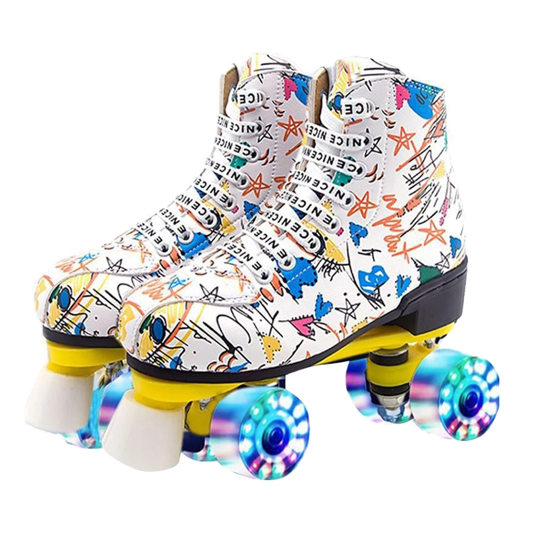 Graffiti para adultos, hombres, niños, mujeres, doble fila, zapatos de patinaje, patines con Flash de cuatro ruedas, patines, patinaje, pista doble