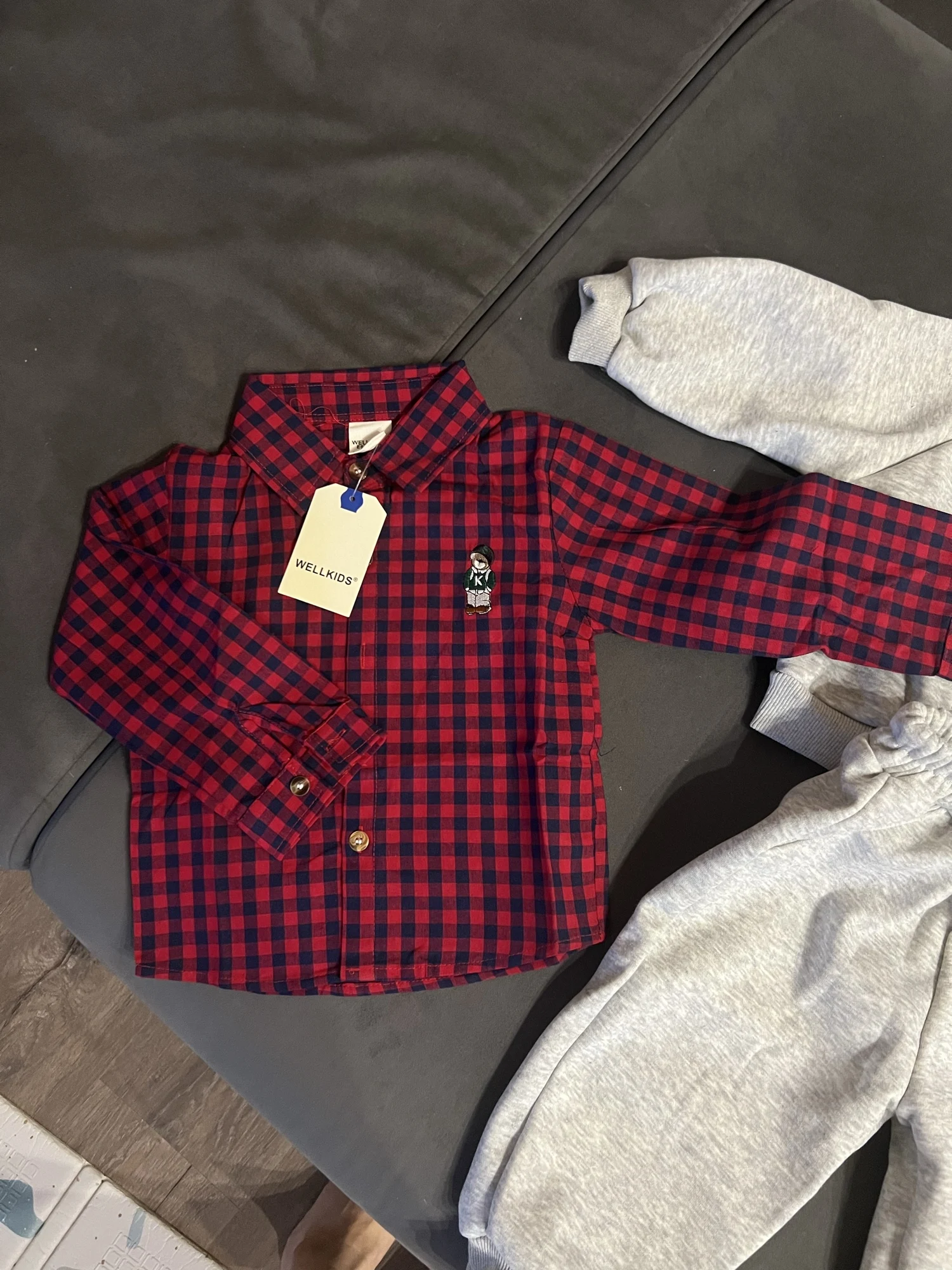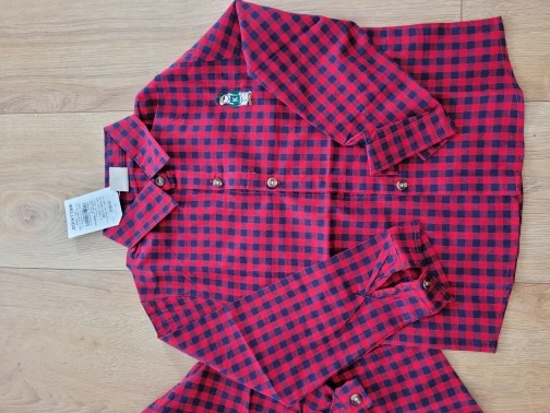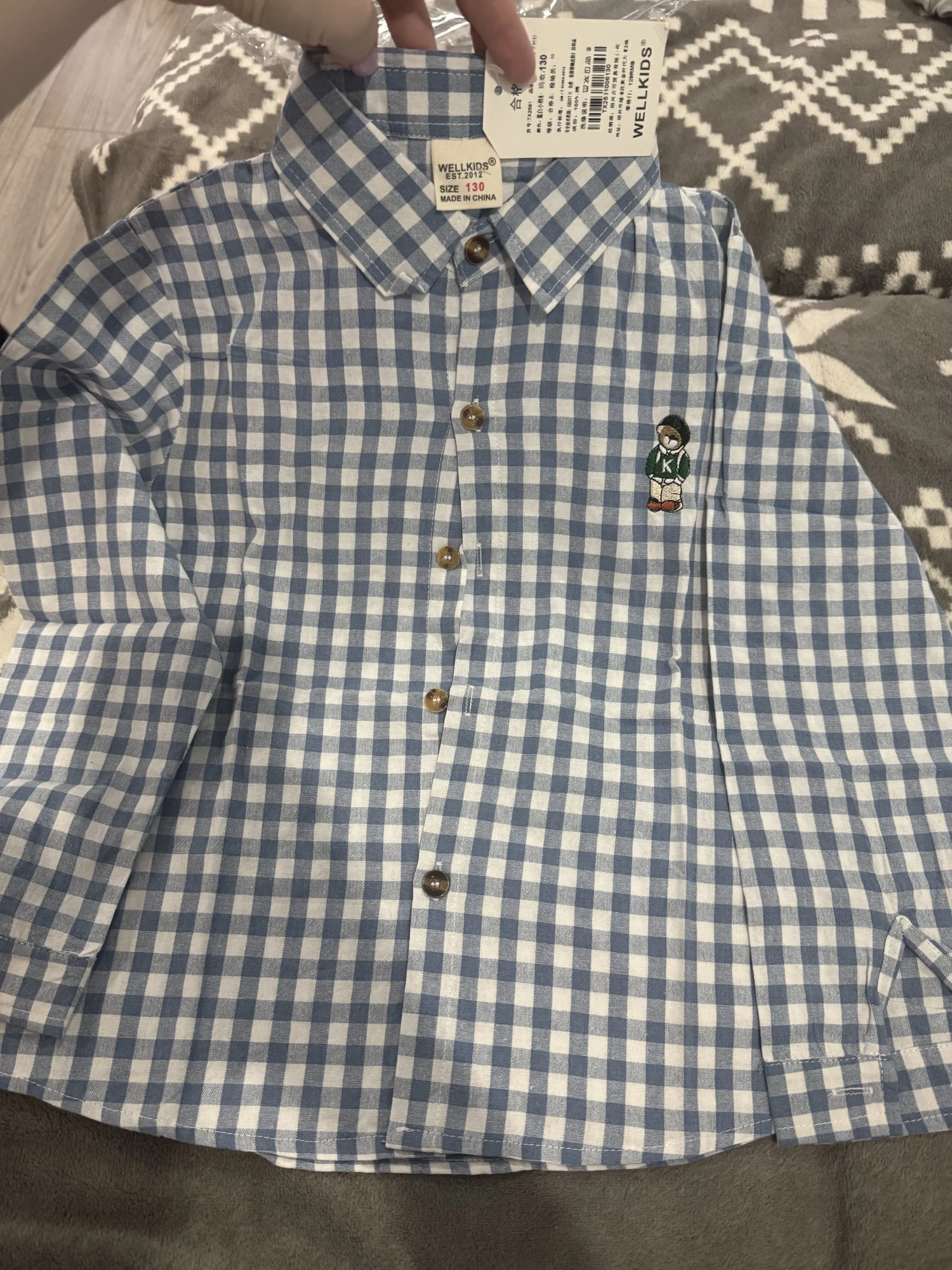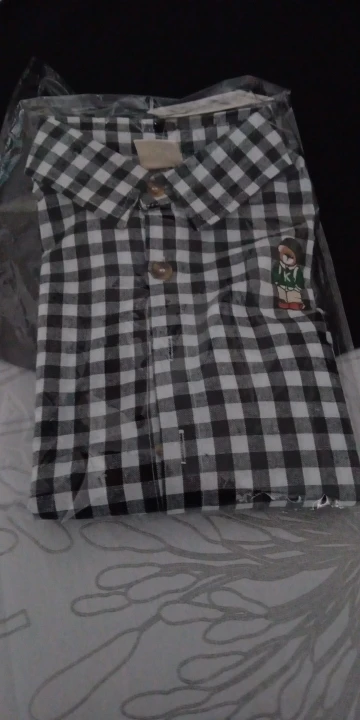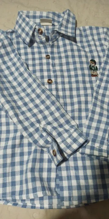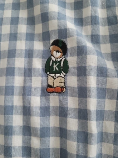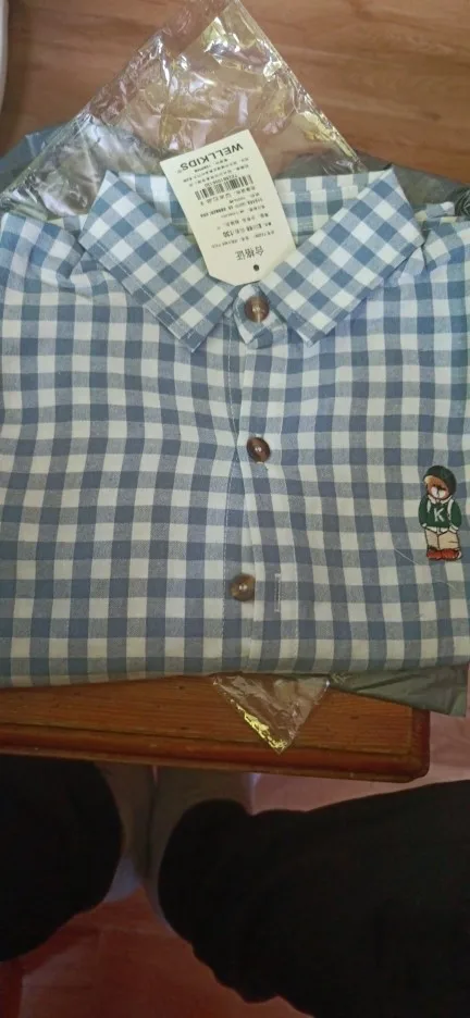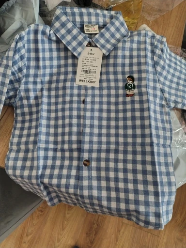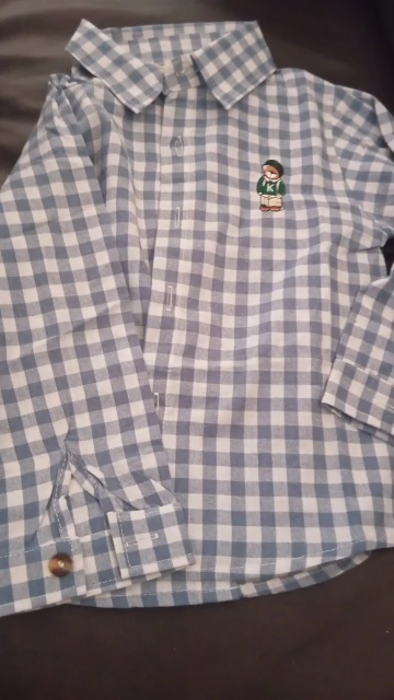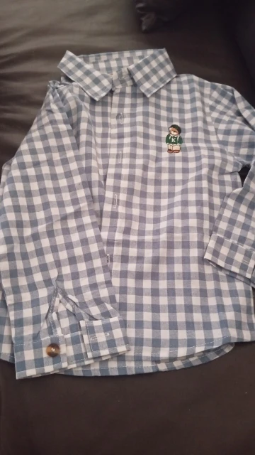 La camisa es muy bonita, bien cosida, en un bonito color. El oso de peluche está bordado. El tamaño coincide. Yo recomiendo.