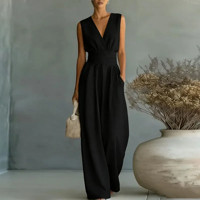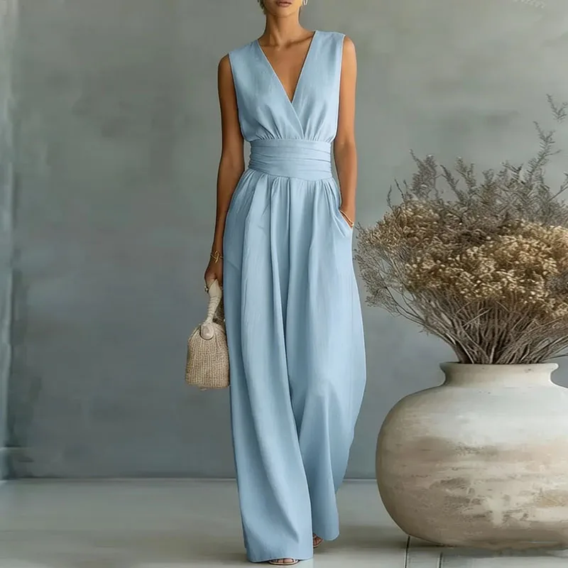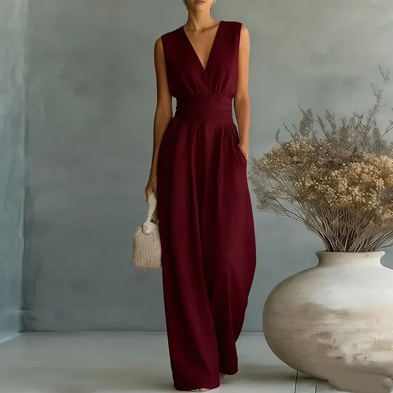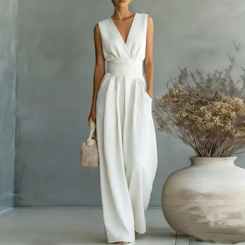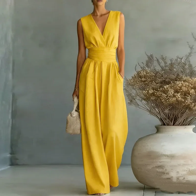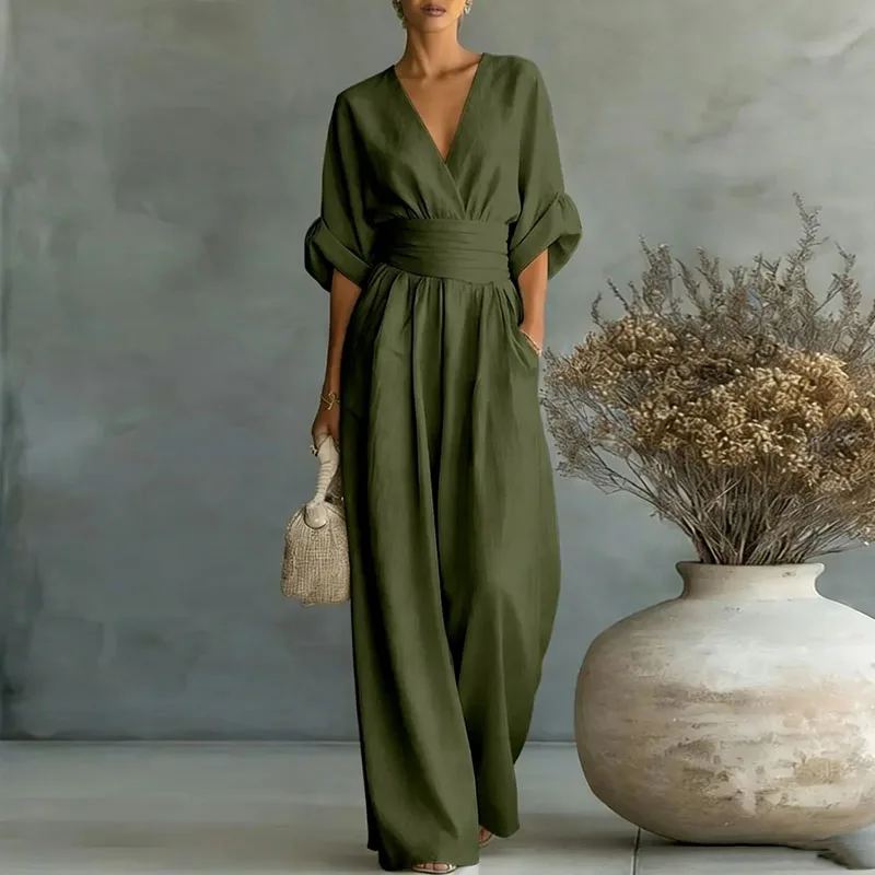 Mono de mujer estilo OL, de cintura alta, drapeado, con cuello en V, pantalón de pierna ancha, casual, de media manga, para primavera 2026