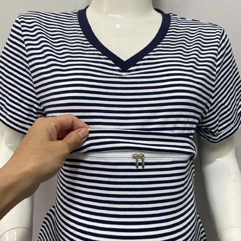 Recién llegado, vestido de maternidad de talla grande, vestido de verano de manga corta con cuello en V y rayas, holgado para amamantar, para mujeres embarazadas