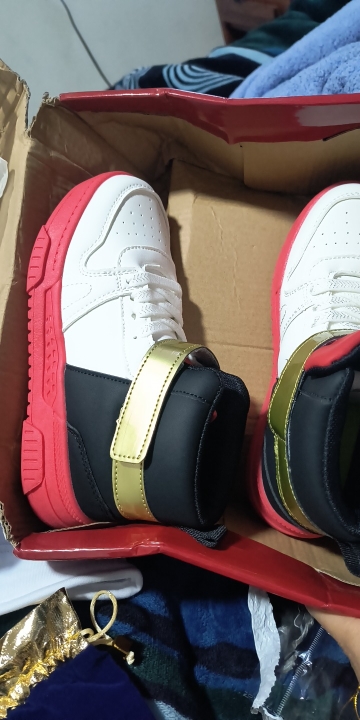 My son loved the sneakers! It arrived on time as stated, in perfect condition, with great material and even comes with the earrings.