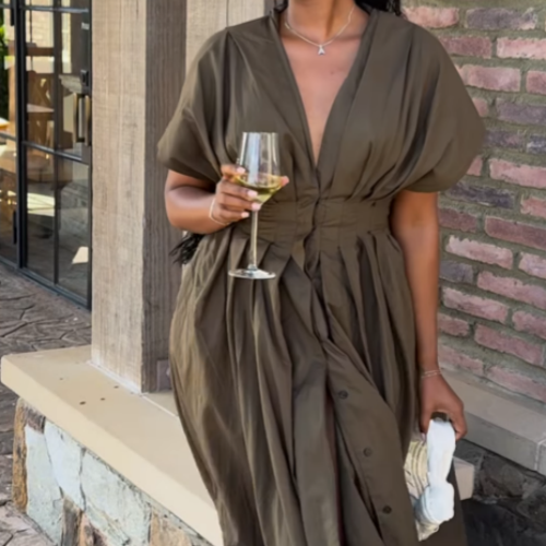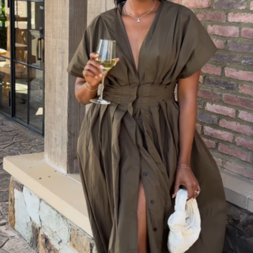 Ya sea que asistas a una fiesta en el jardín, un brunch o un evento nocturno especial, este vestido midi con cuello en V profundo es la elección perfecta.Combina estilo, comodidad y elegancia, lo que lo convierte en imprescindible en tu armario.💃✨