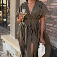 Vestido Sexy plisado con cuello en V y cordones para mujer, moda de manga corta, cintura alta, ajustado, vestidos largos para mujer, fiesta de vacaciones elegante de verano