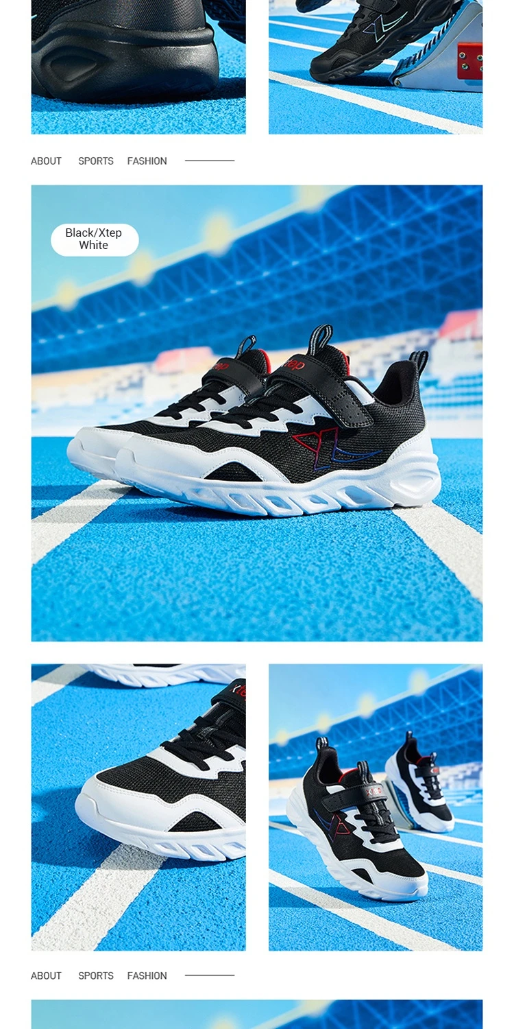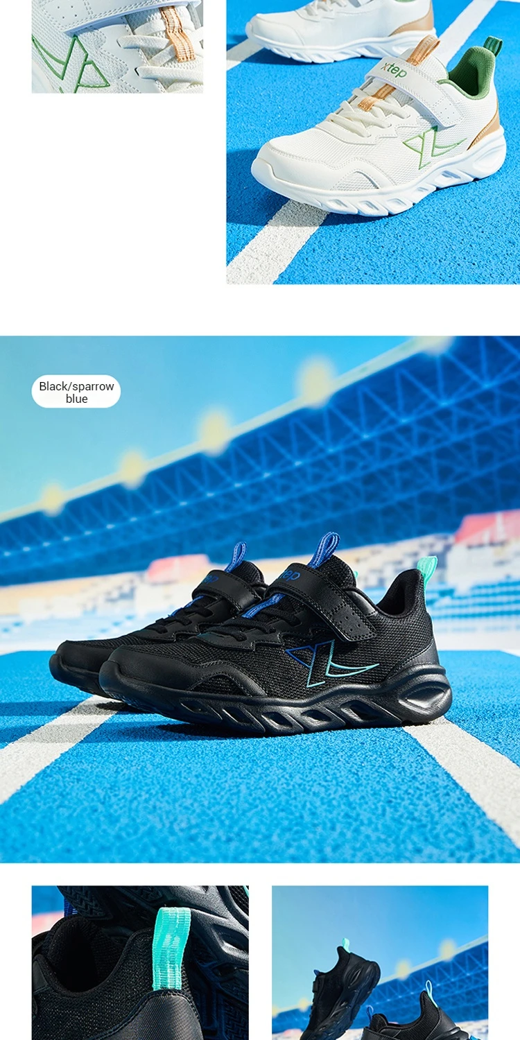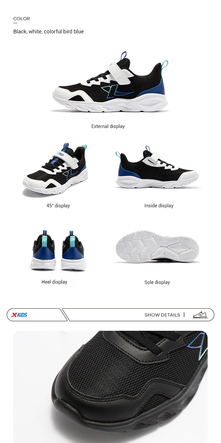 Xtep, zapatillas para correr para niños medianos y mayores, zapatillas deportivas ligeras transpirables de malla con Velcro de otoño para niños 676315119551