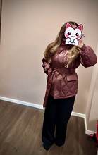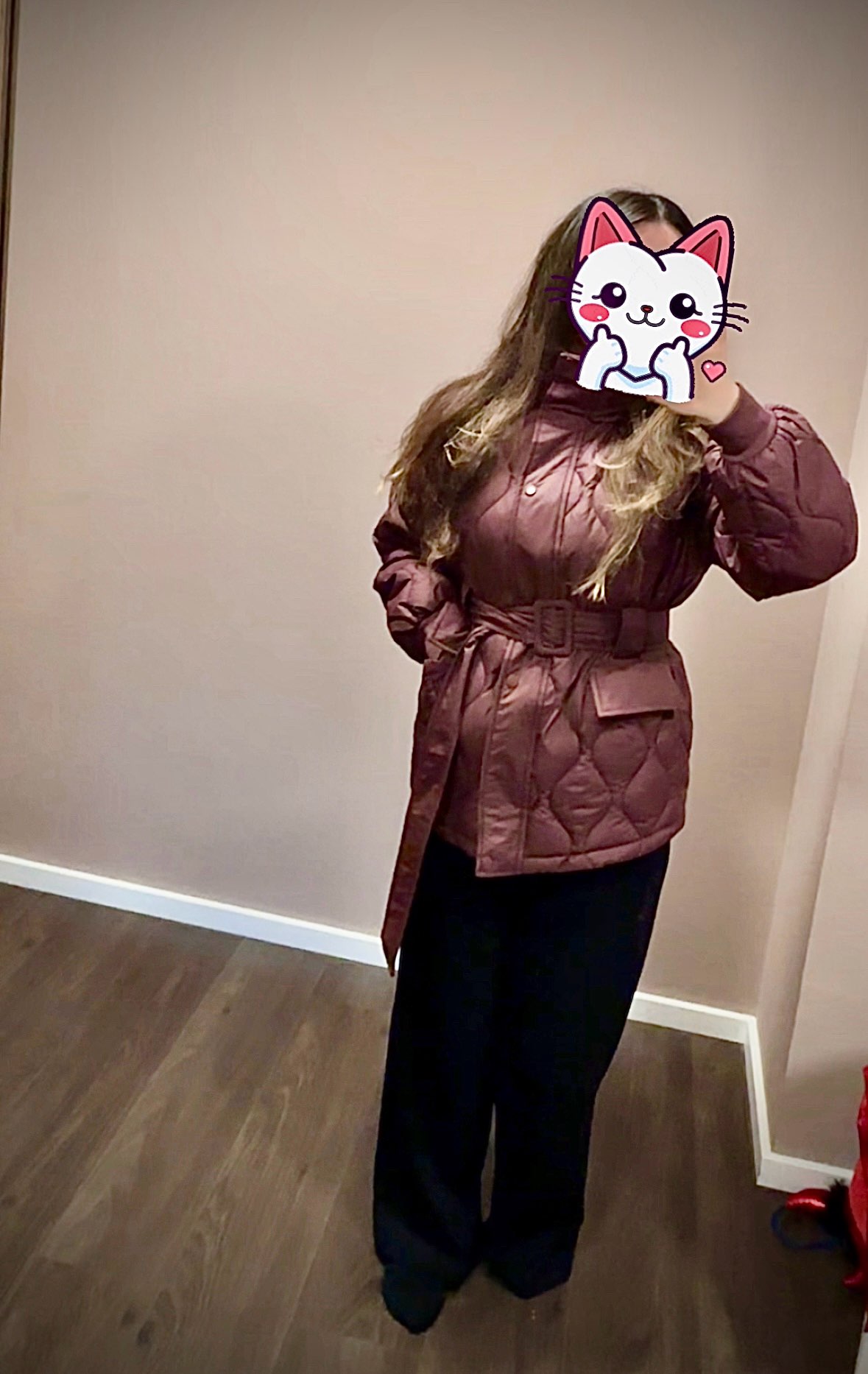 ¡Wow🙌🏻🥹! Cuando no esperas mucho, pero la chaqueta llega y abres el paquete, ¡y ahí está el más hermoso color burdeos, tal como en la foto, oscuro, profundo, elegante! La chaqueta es suave y cálida, la talla queda perfecta. Y ya recibí un cumplido en la calle de una chica desconocida por esta chaqueta. 🥰 Mido 162 cm, peso 58 kg, y normalmente uso talla M. Definitivamente compraré algo más de ustedes🥹.