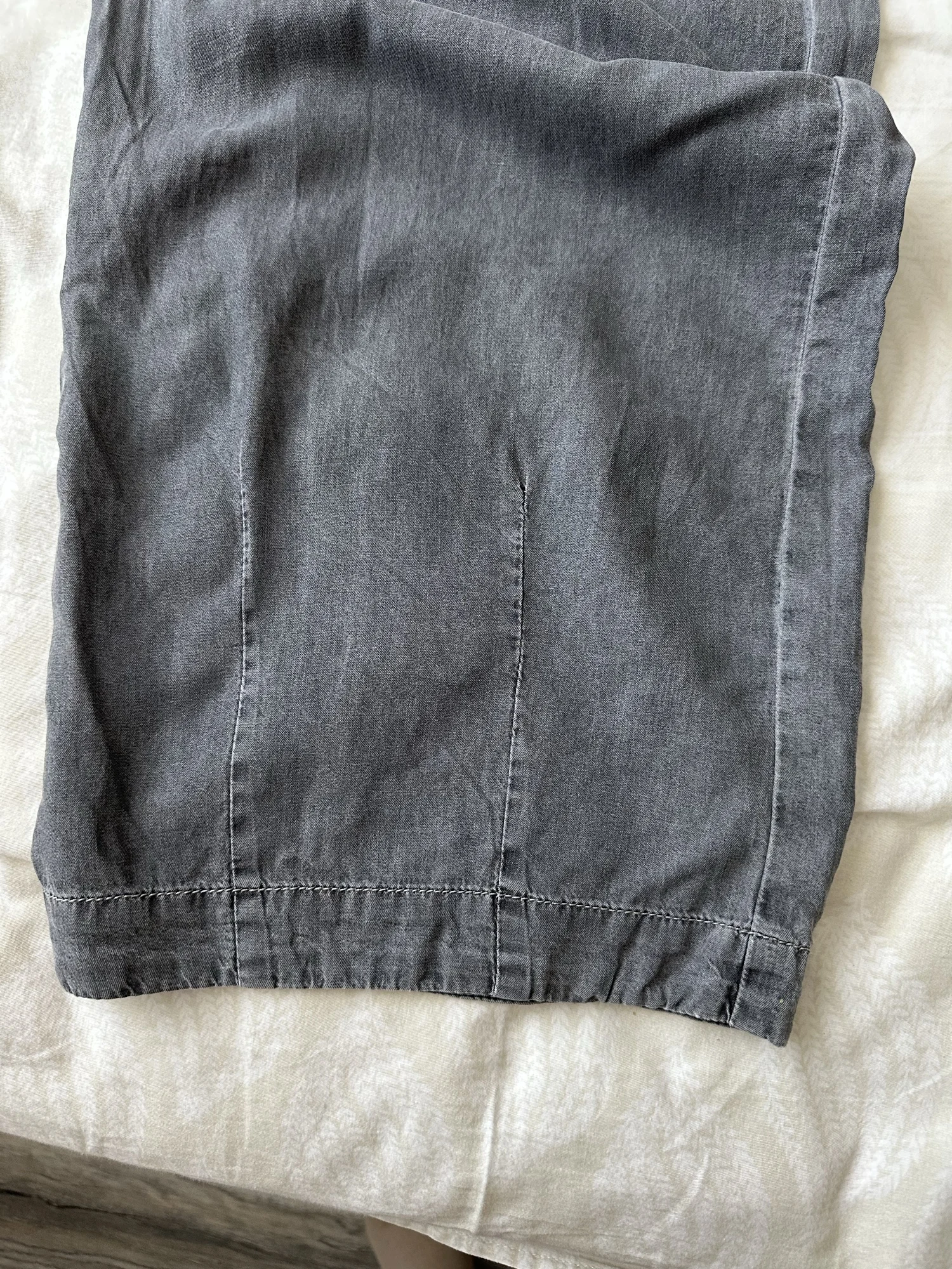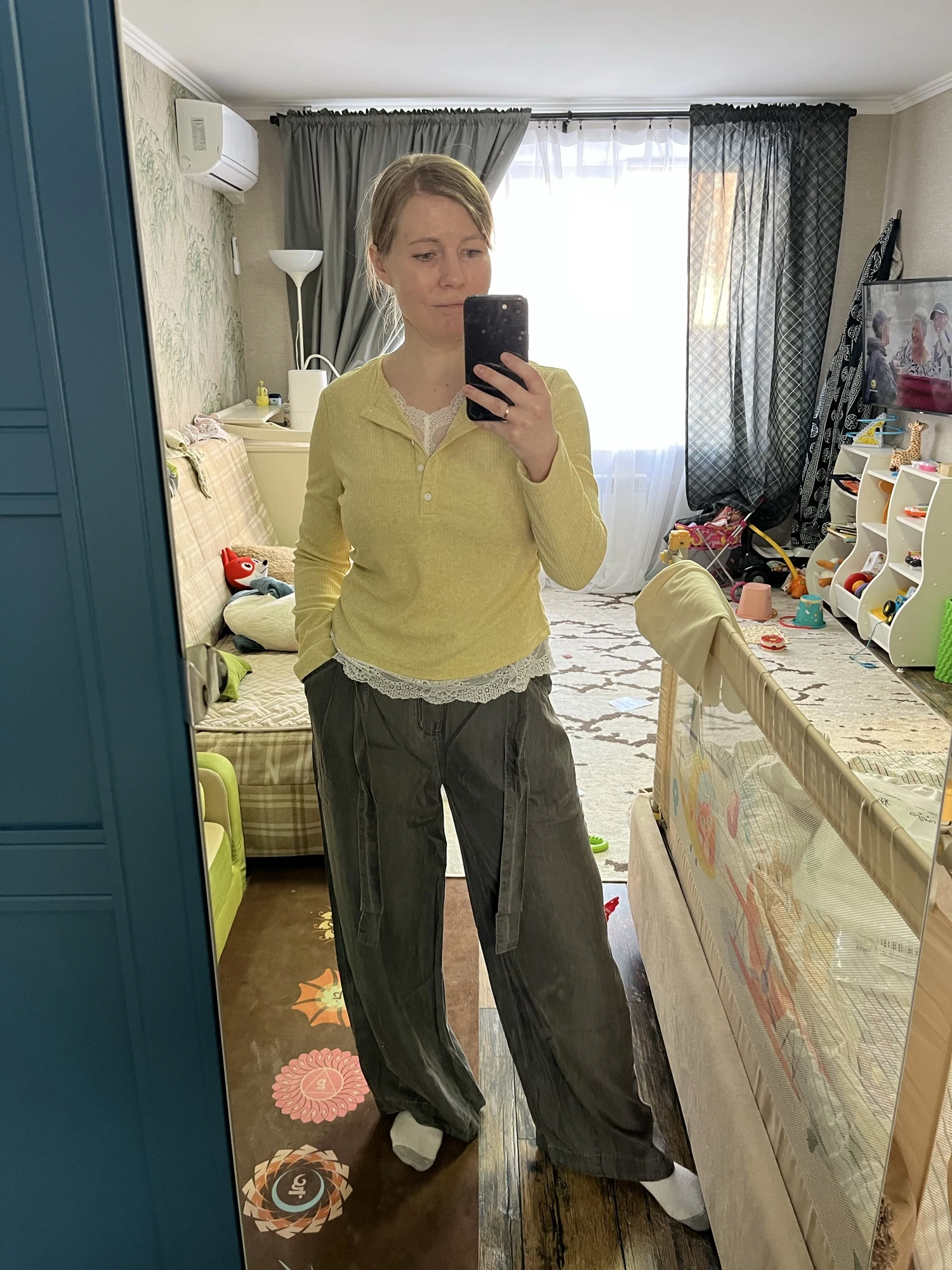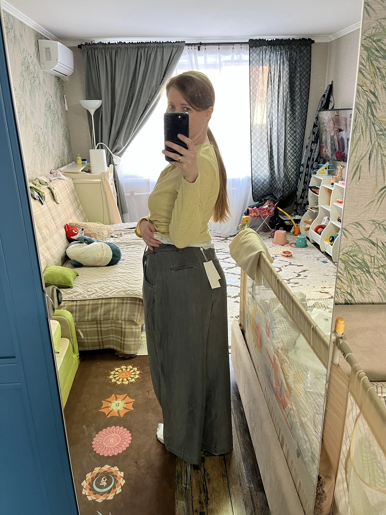 Los pantalones son excelentes. 100% lyocel, no se arruga mucho, no es como el lino. Delgado, agradable, no picante. La confección es buena. Ajustan una cintura de 73cm, pero son ajustados, alrededor de 98cm es justo. Para una altura de 158cm, no necesitaba cortarlo, aunque se podrían quitar 1cm para mayor comodidad.