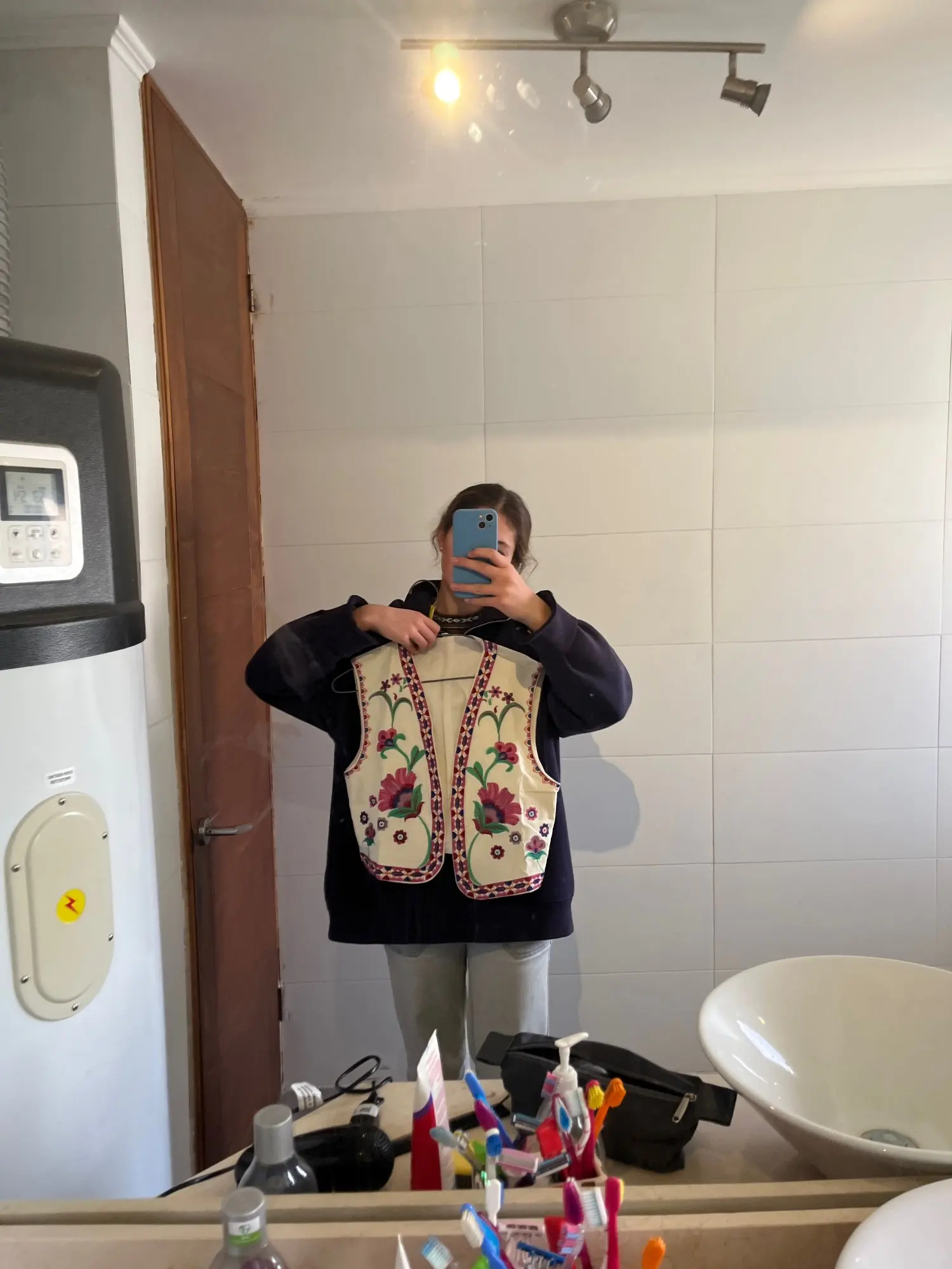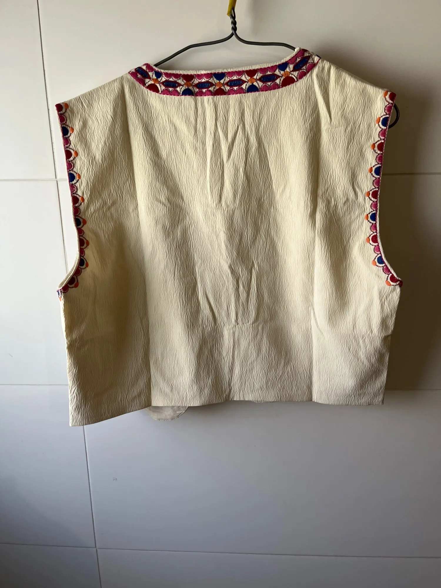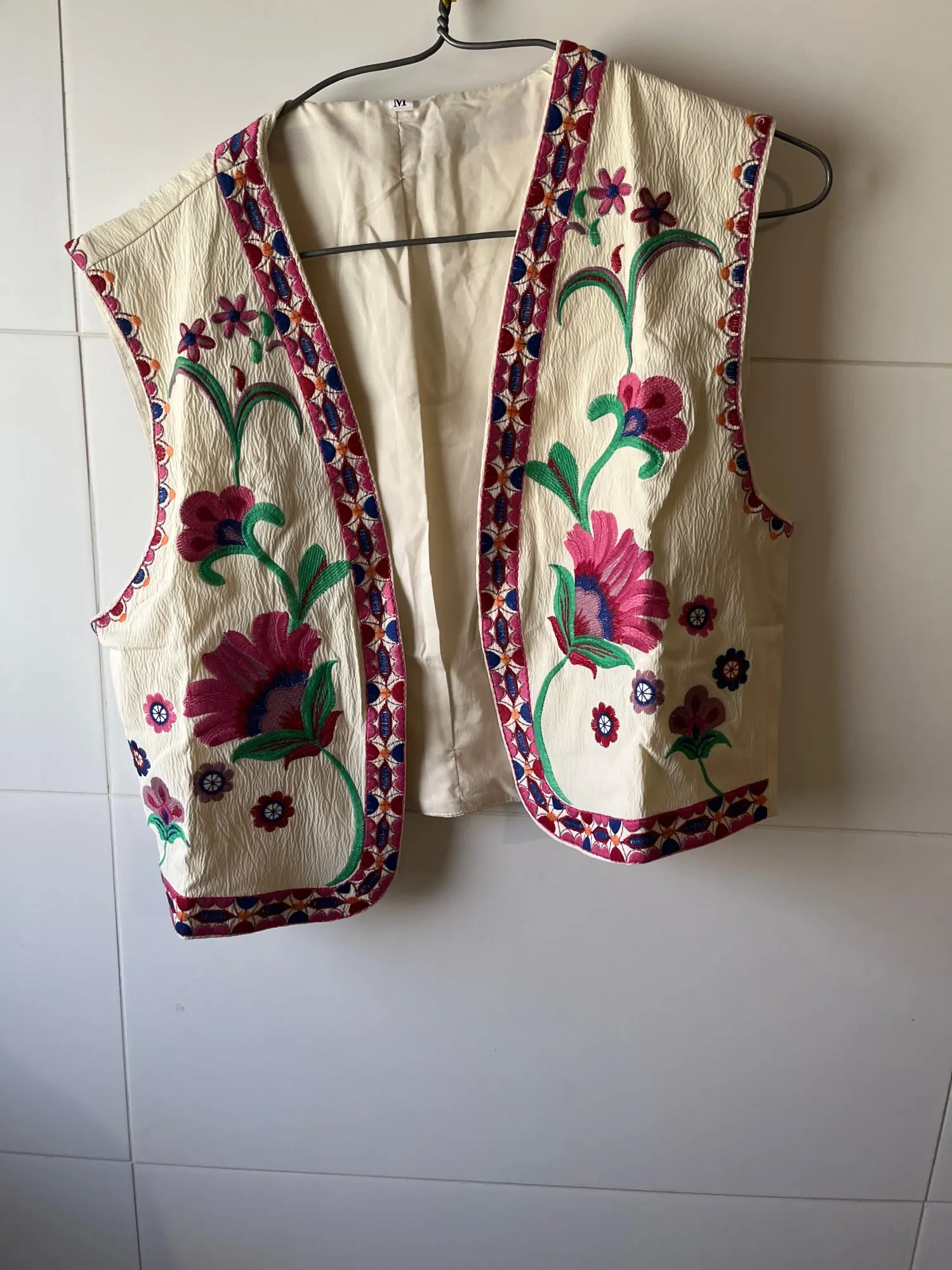 chaleco bastante bonito, con una tela suave, los bordados están bien hechos, tienen forro. todo está bien