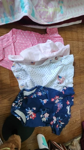 Son hermosos , tal como se muestran en las fotos. La tela es suave y cómoda, perfecta para la piel del bebé. Los diseños son adorables y el precio por el paquete es excelente. Llegaron rápido y bien empaquetados. ¡Los recomiendo totalmente! 💕👶