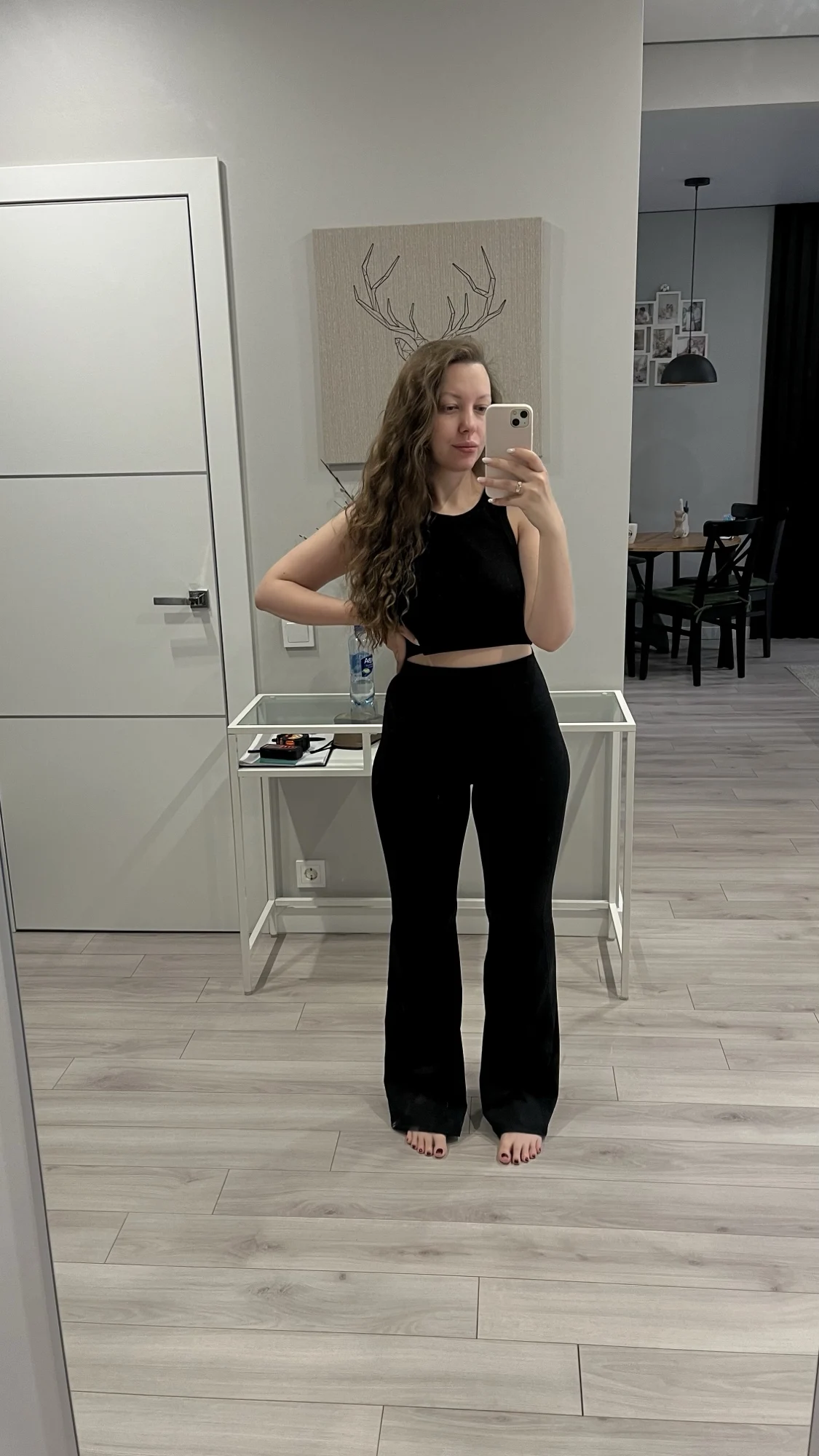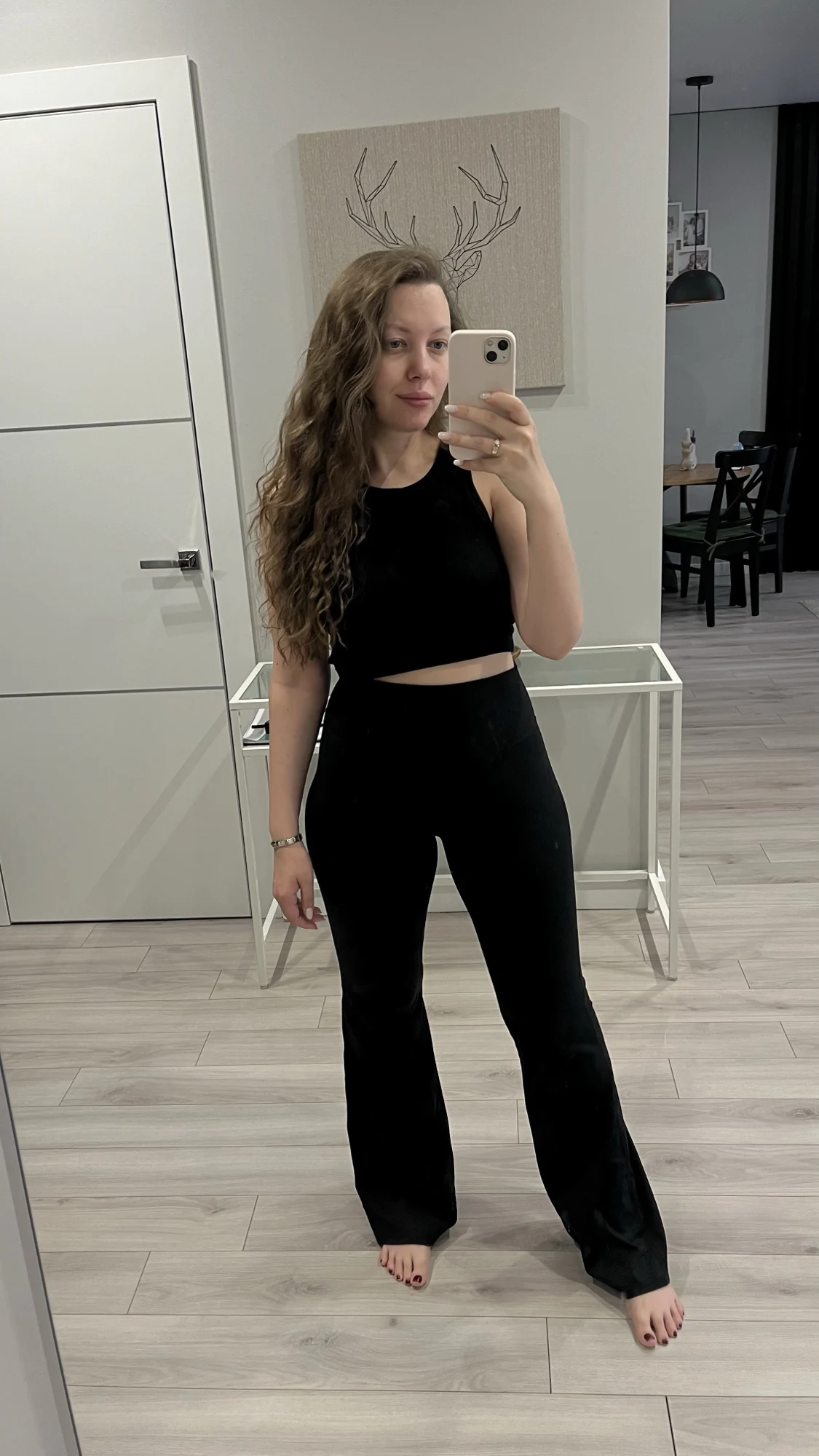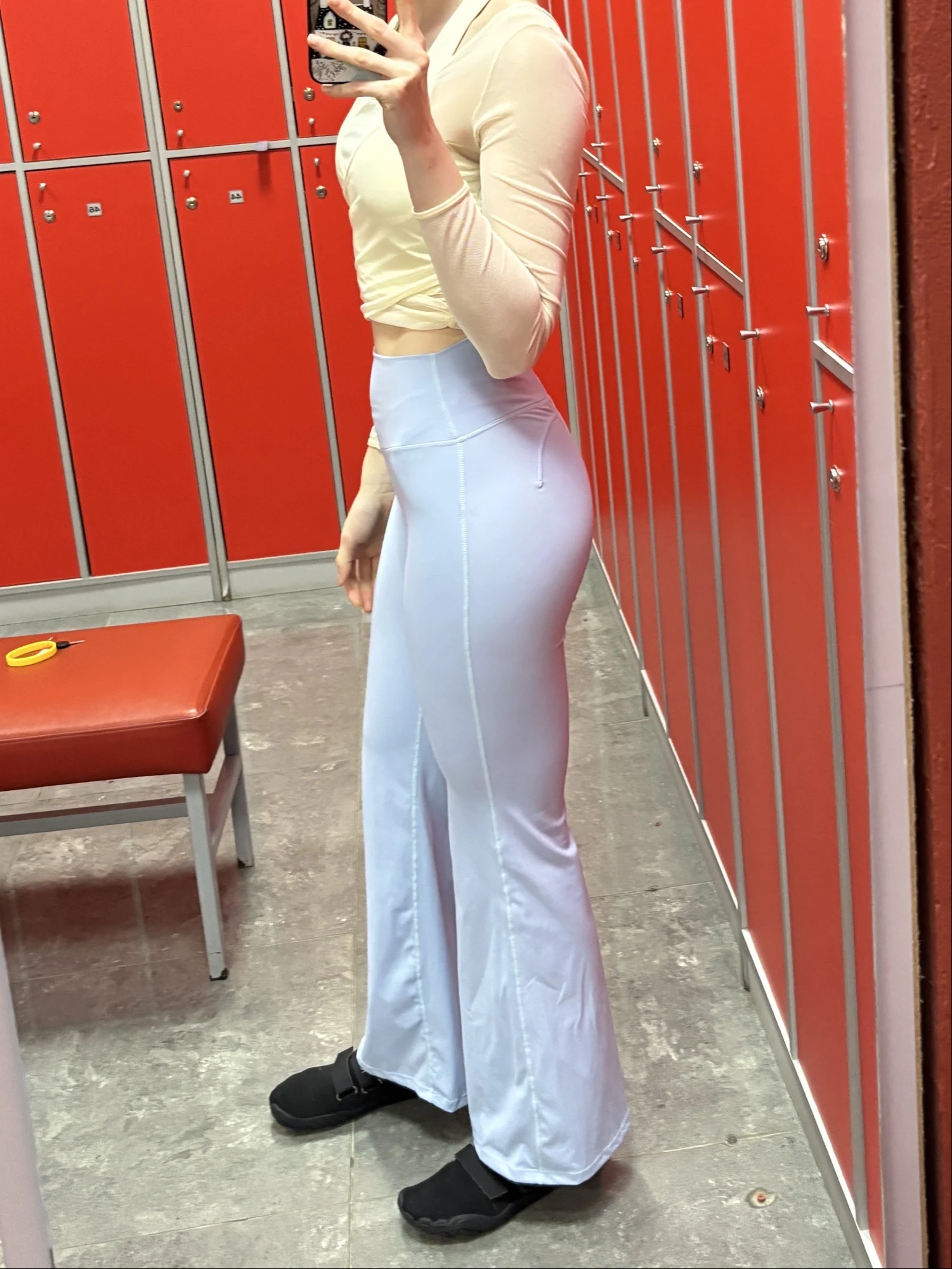 Los leggings son geniales, la tela es agradable. Medidas 67/100, la talla queda perfectamente, pero son un poco cortos para una altura de 170 cm. No está claro por qué hay esta franja horizontal en la parte trasera, pero bueno. En la última foto, muestro que no se transparenta nada, adecuados para sentadillas.